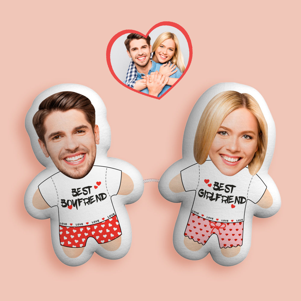 Custom Face Photo Pillow Couple Toy Plush Doll Link with a Line