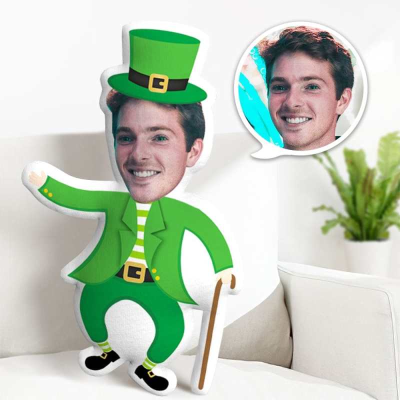 Custom Face Pillow Personalized Minime Throw Pillow Gentleman Gifts For St. Patrick's Day