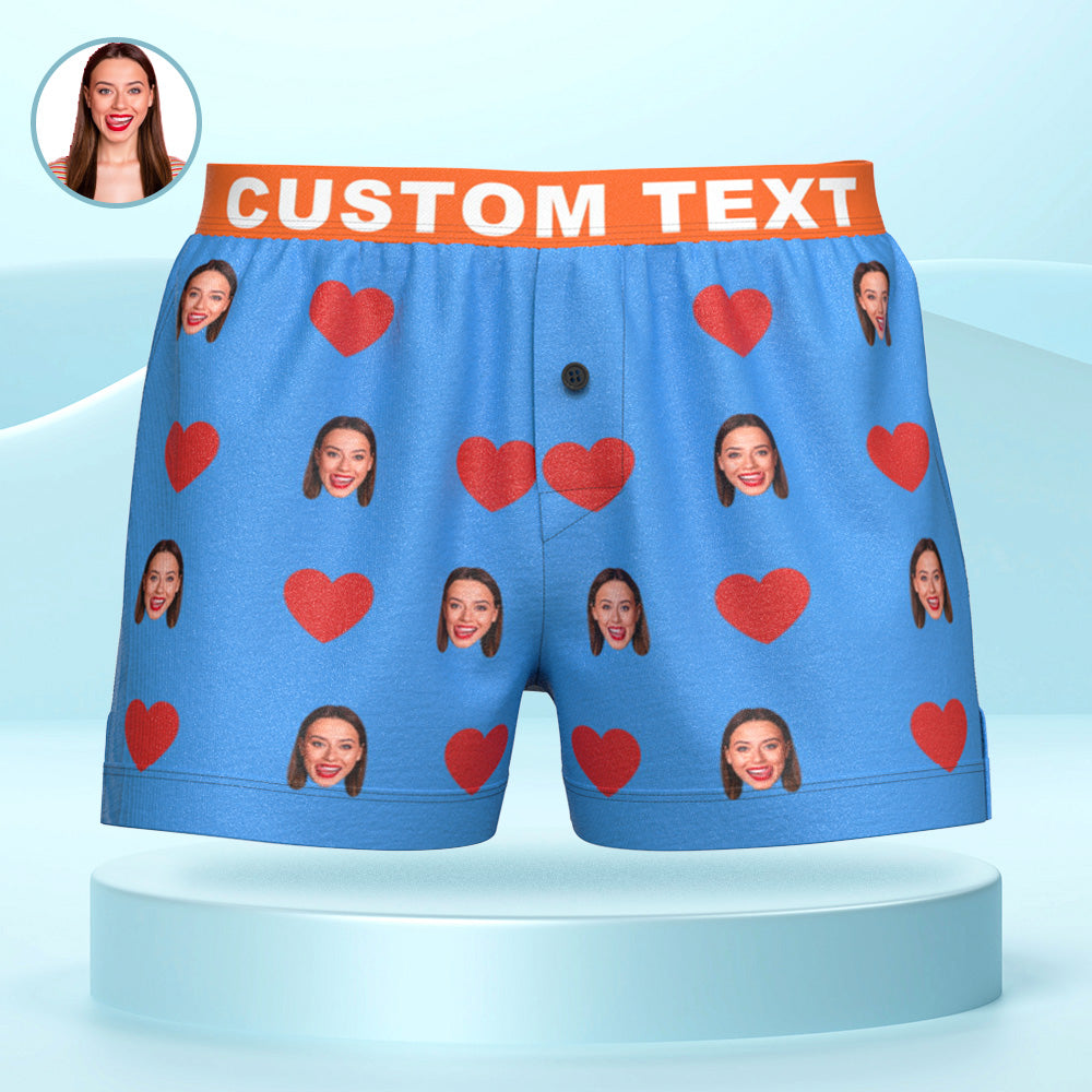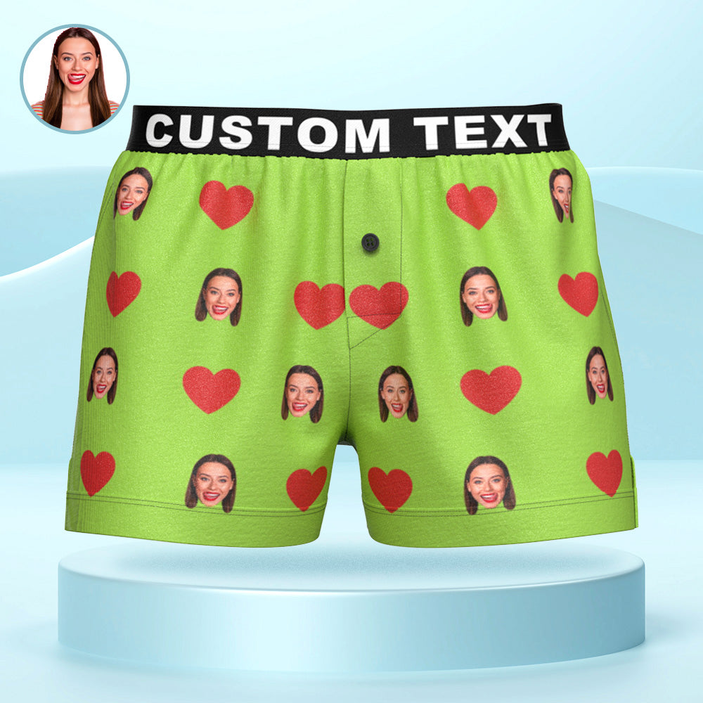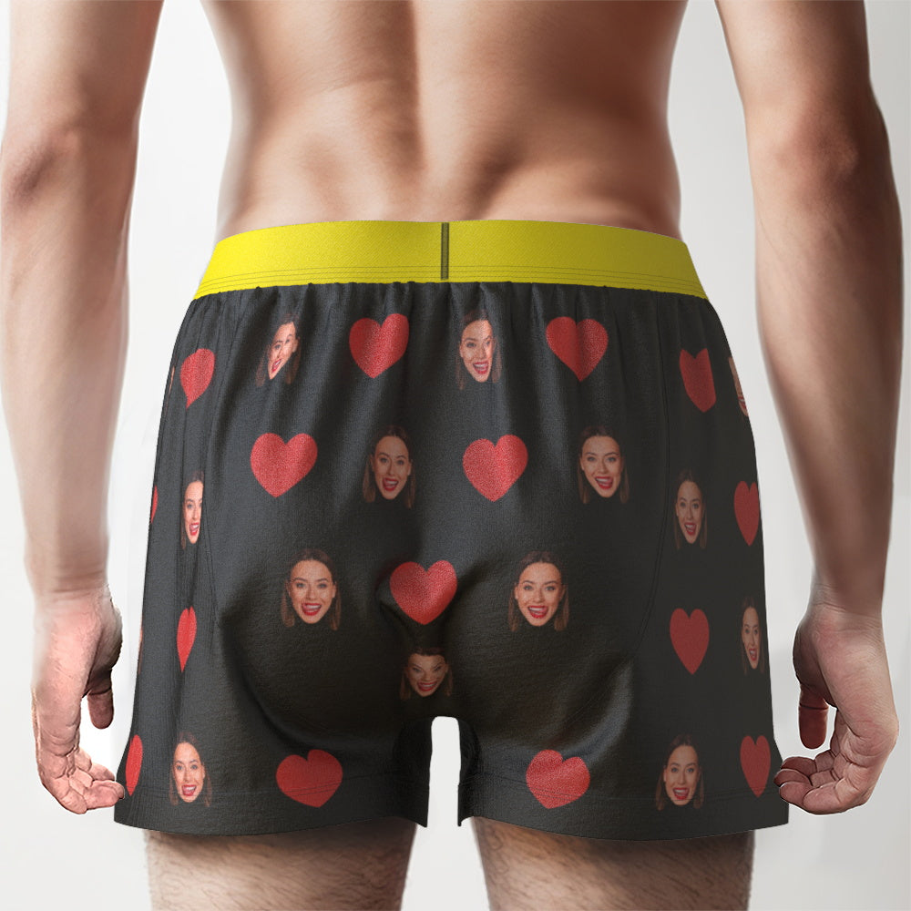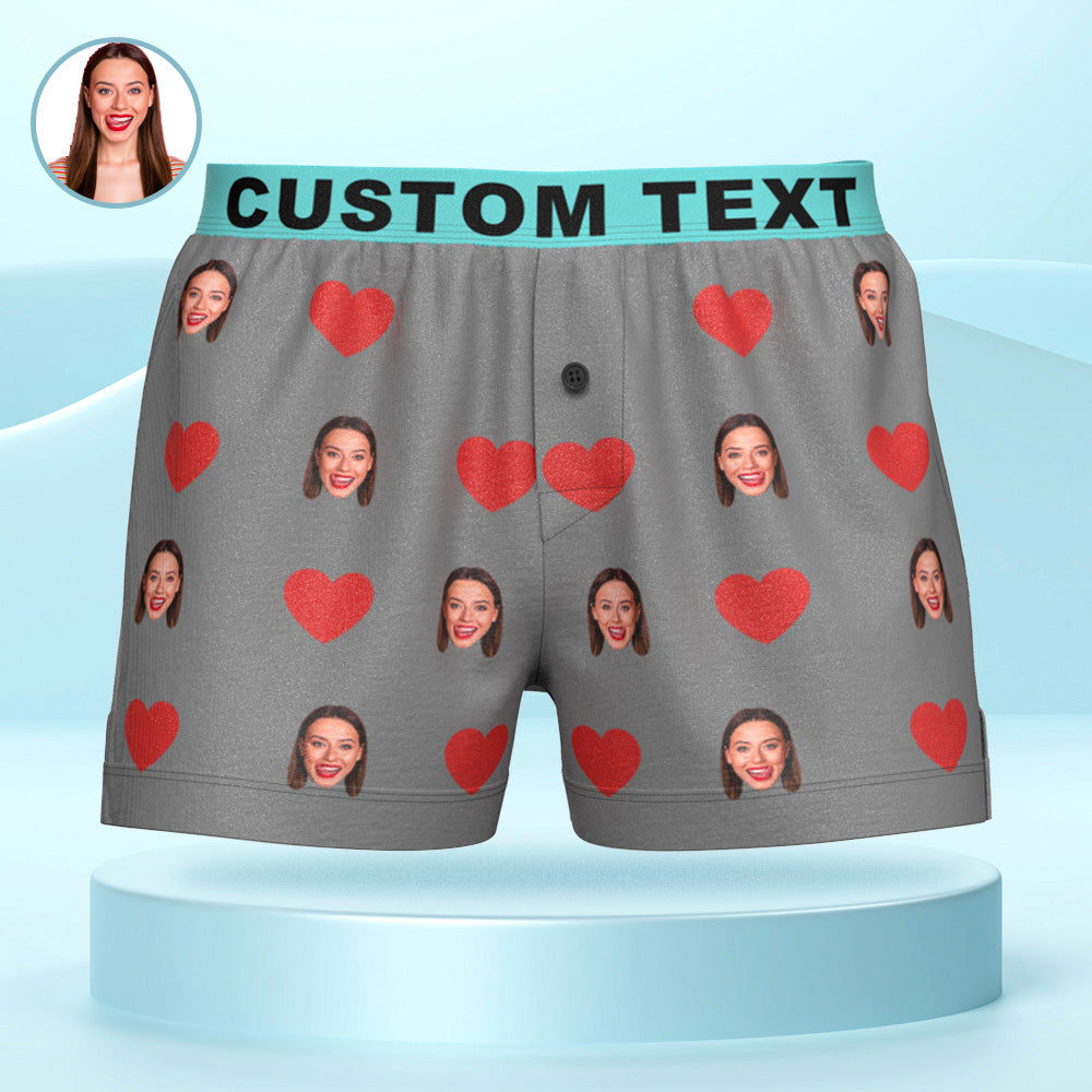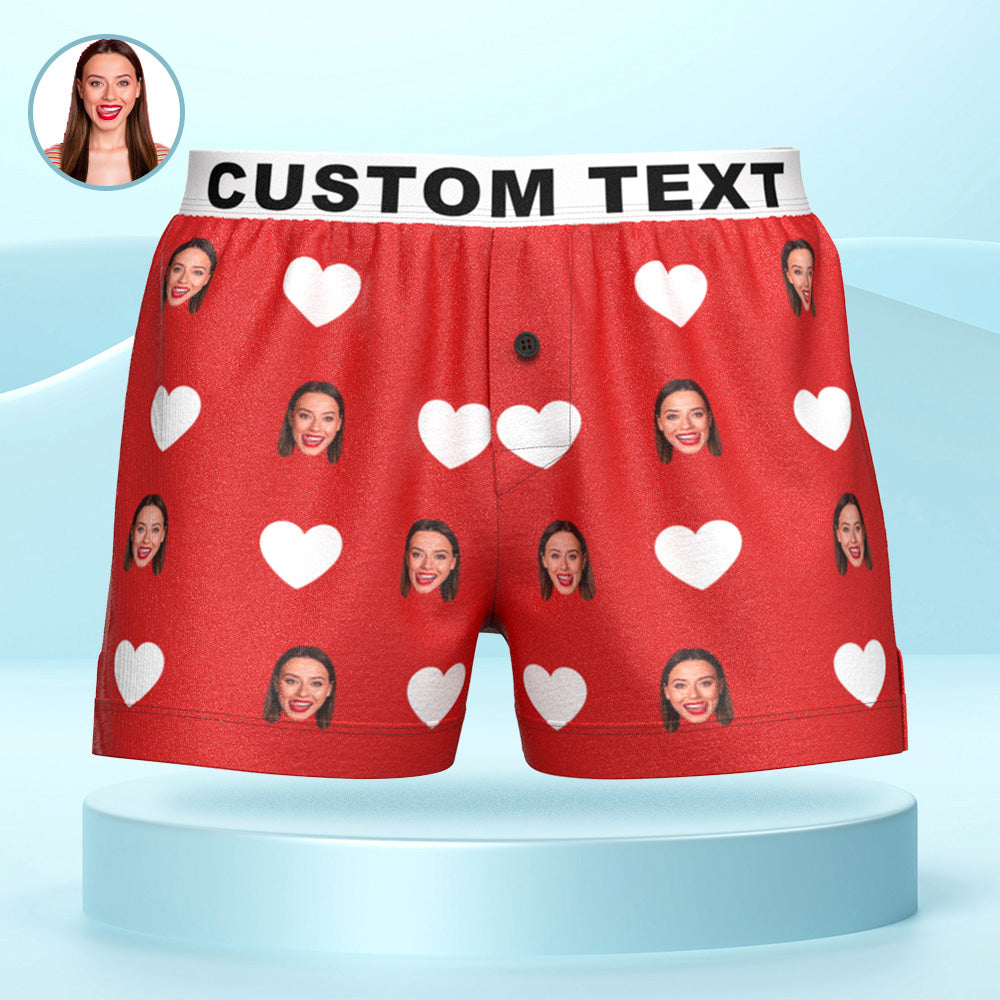 Custom Face Red Heart Design Boxer Shorts with Personalized Text on the Waistband Personalized Underwear for Him