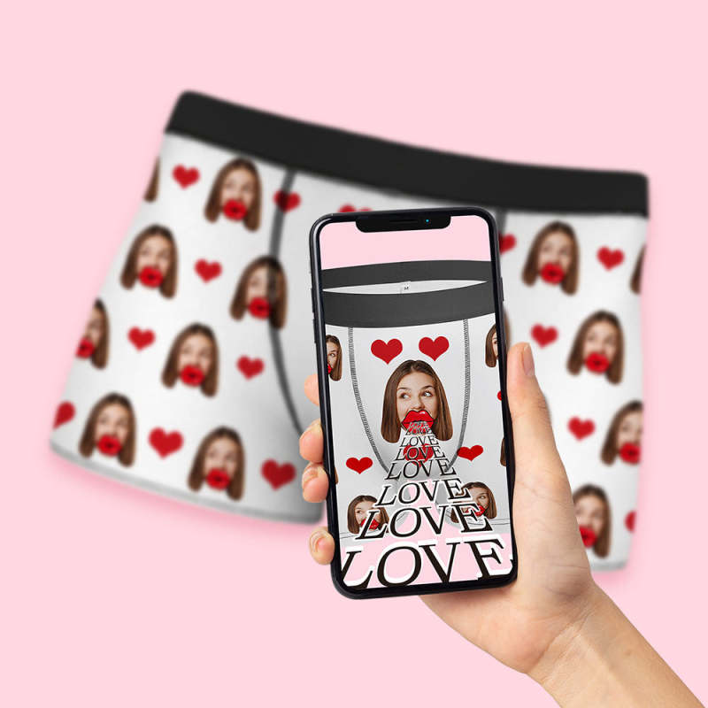 Custom Face Red Lips and Heart Boxer Personalized Valentine's Day Gift For Him