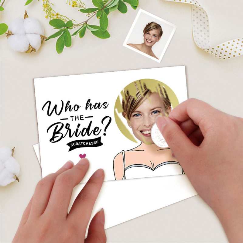 Custom Face Scratch Card Bridal Shower Scratch Off Cards - Who Has The Bride