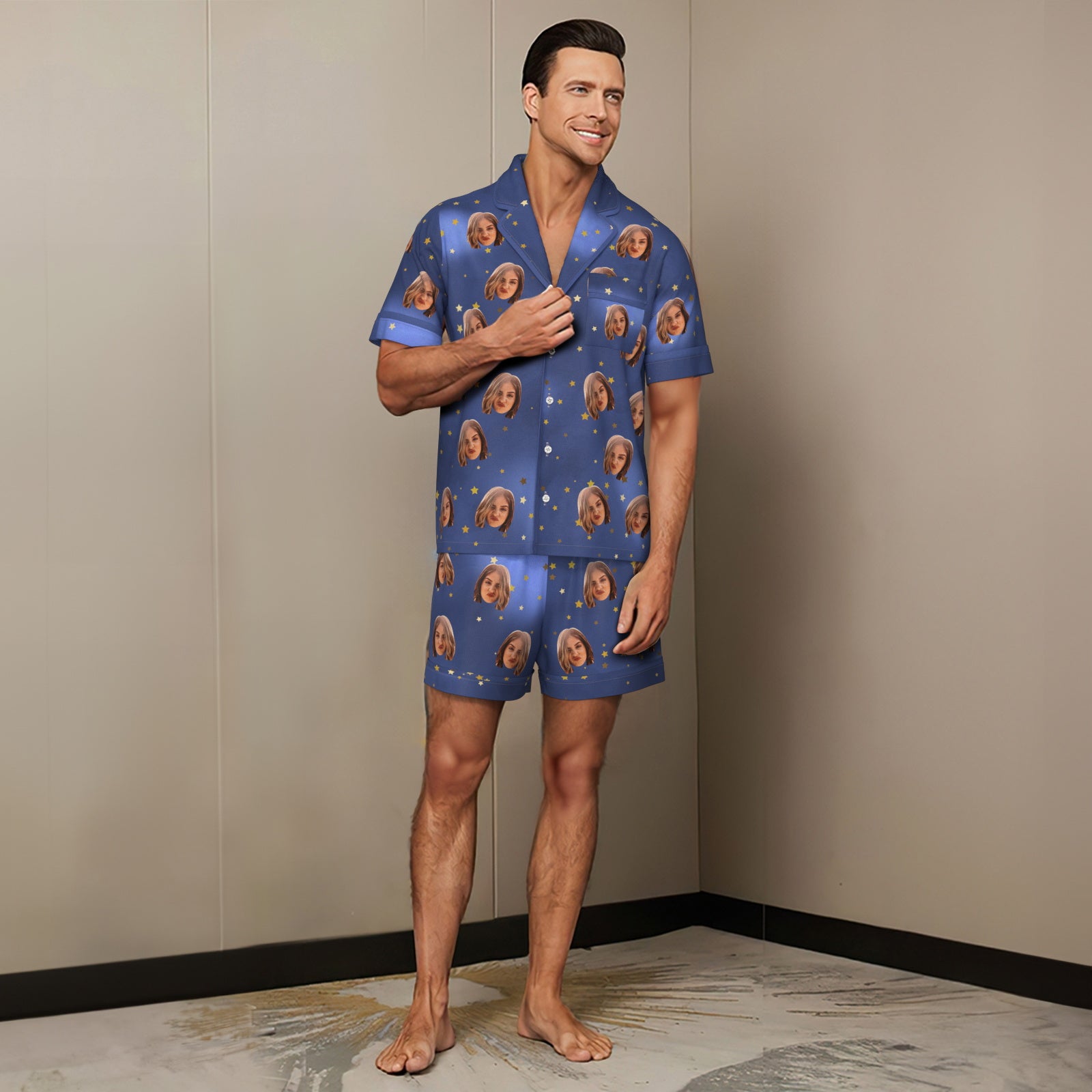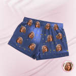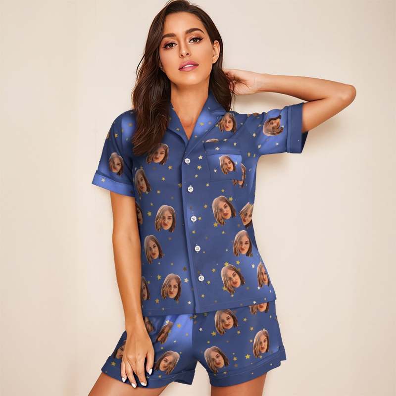 Custom Face Short Sleeved Pajamas Personalized Photo Blue Sleepwear Stars Holiday Gifts