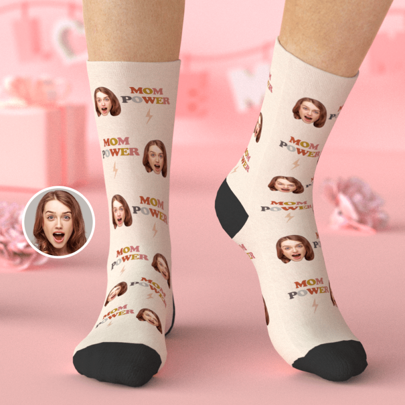 Custom Face Socks with Name Gifts for Mom - Mom Power