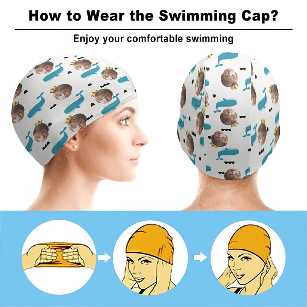 Custom Face Swimming Cap Personalized Swim Caps Cartoon Whale Swim Caps Unisex