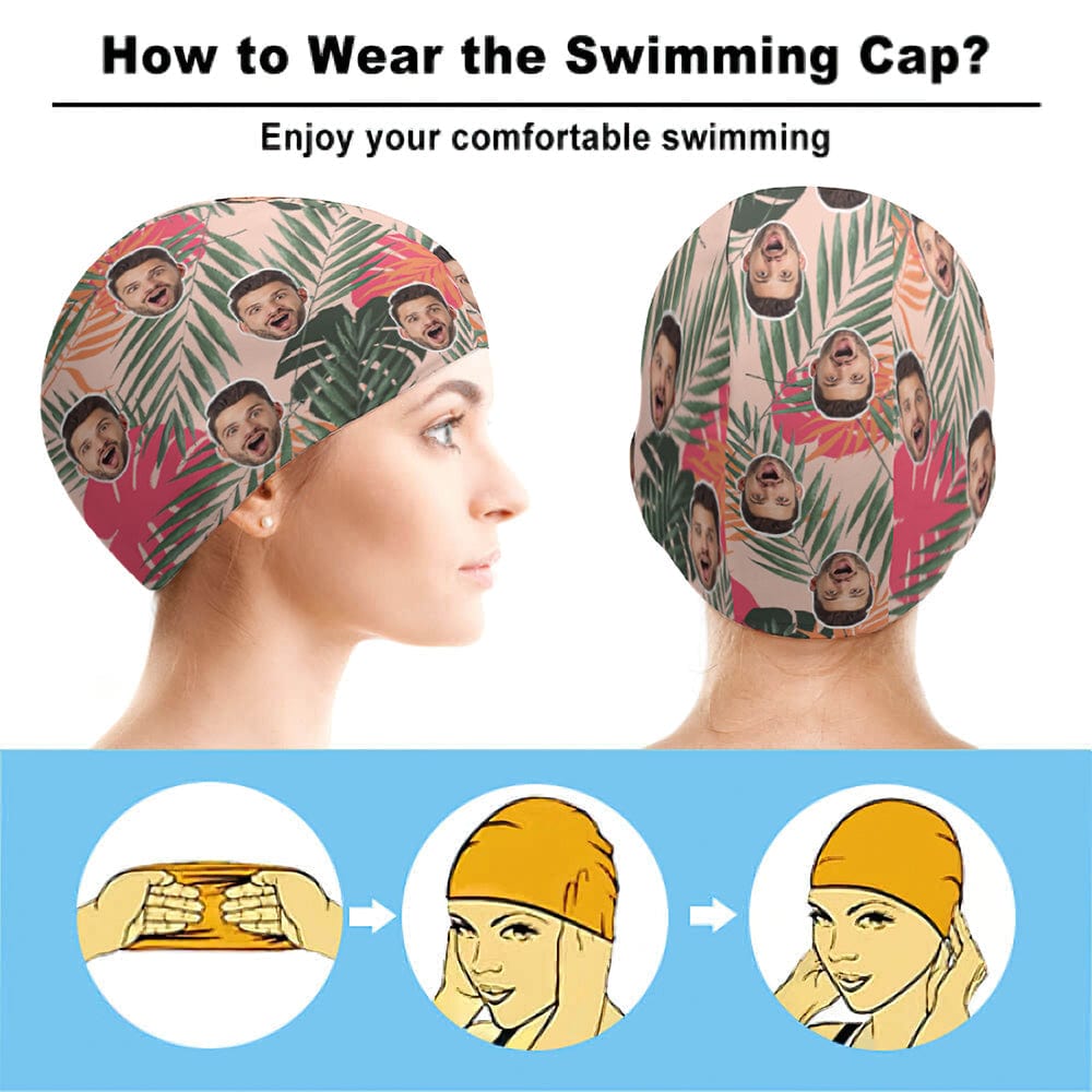 Custom Face Swimming Cap Personalized Swim Caps Tropical Plants Swim Caps Summer Gift Unisex