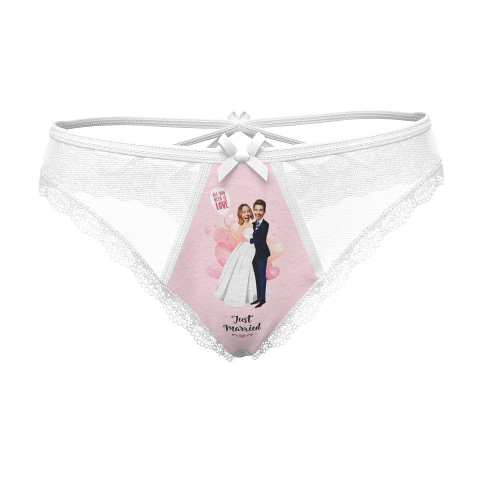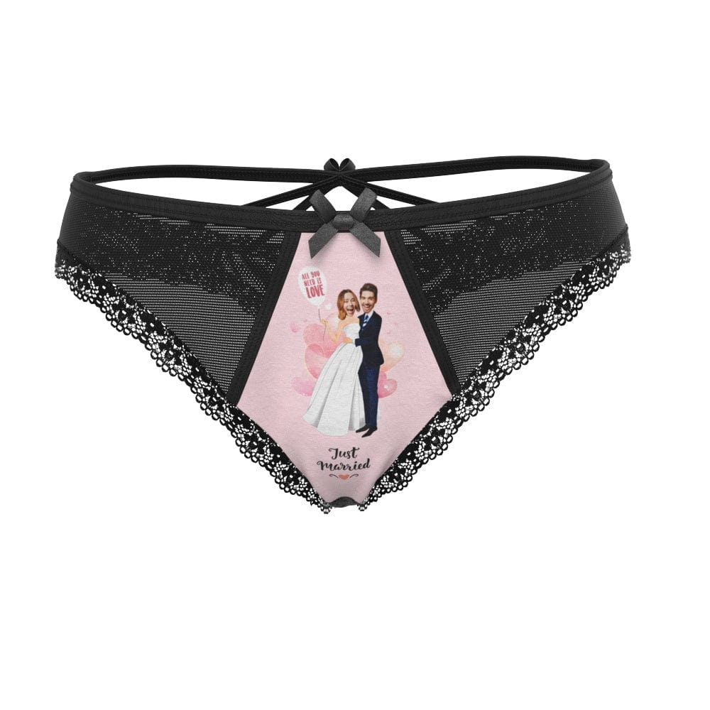 Custom Face Underwear Personalized Lace Thong Wedding Gifts - Just Married