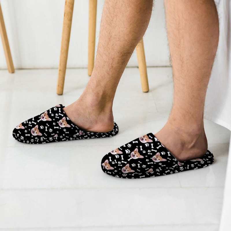 Custom Face Women's and Men's Slippers Personalized Paw Print Casual House Shoes Indoor Outdoor Bedroom Cotton Slippers