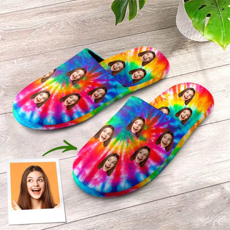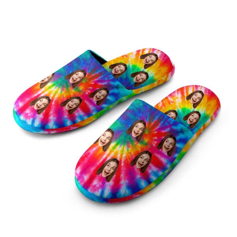 Custom Face Women's and Men's Slippers Personalized Tie Dye Casual House Shoes Indoor Outdoor Bedroom Cotton Slippers