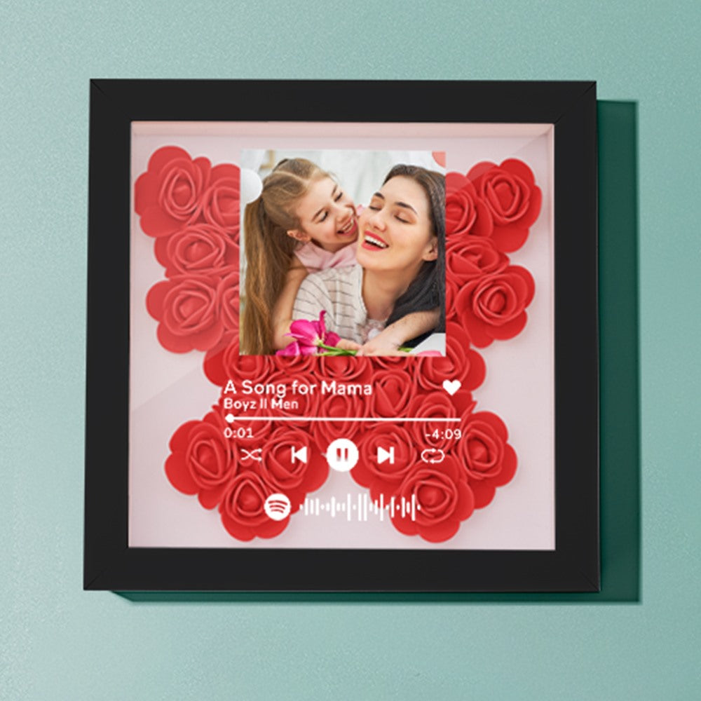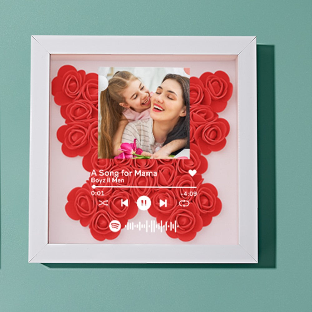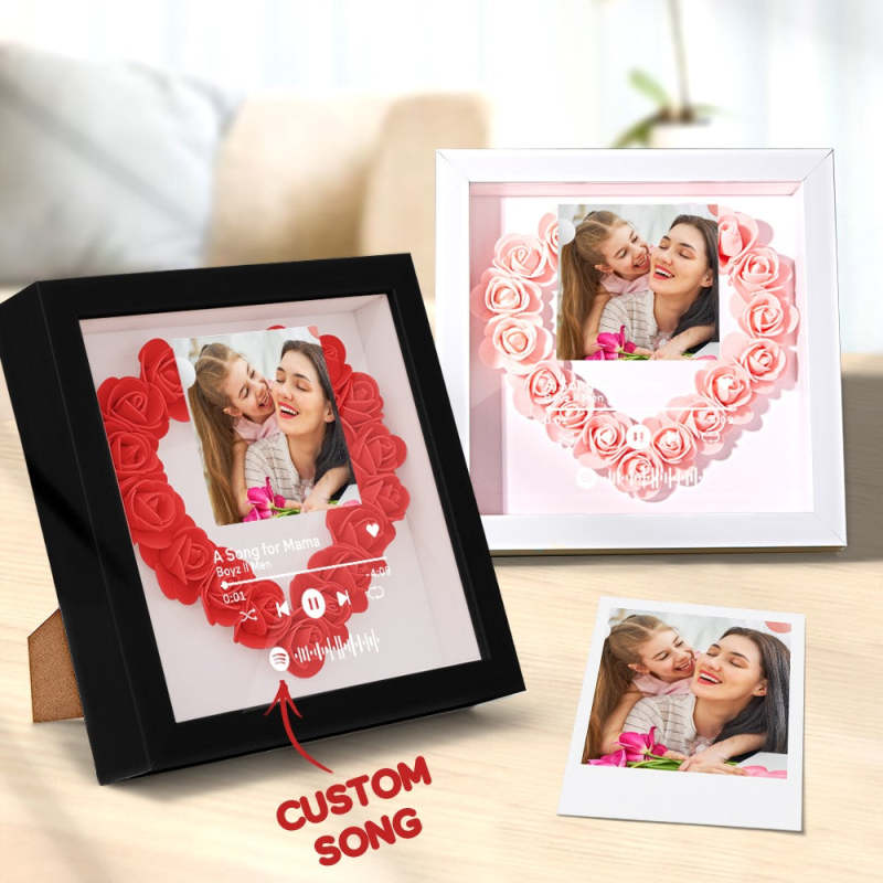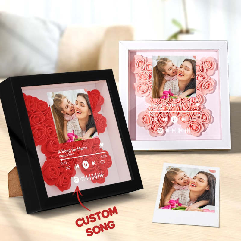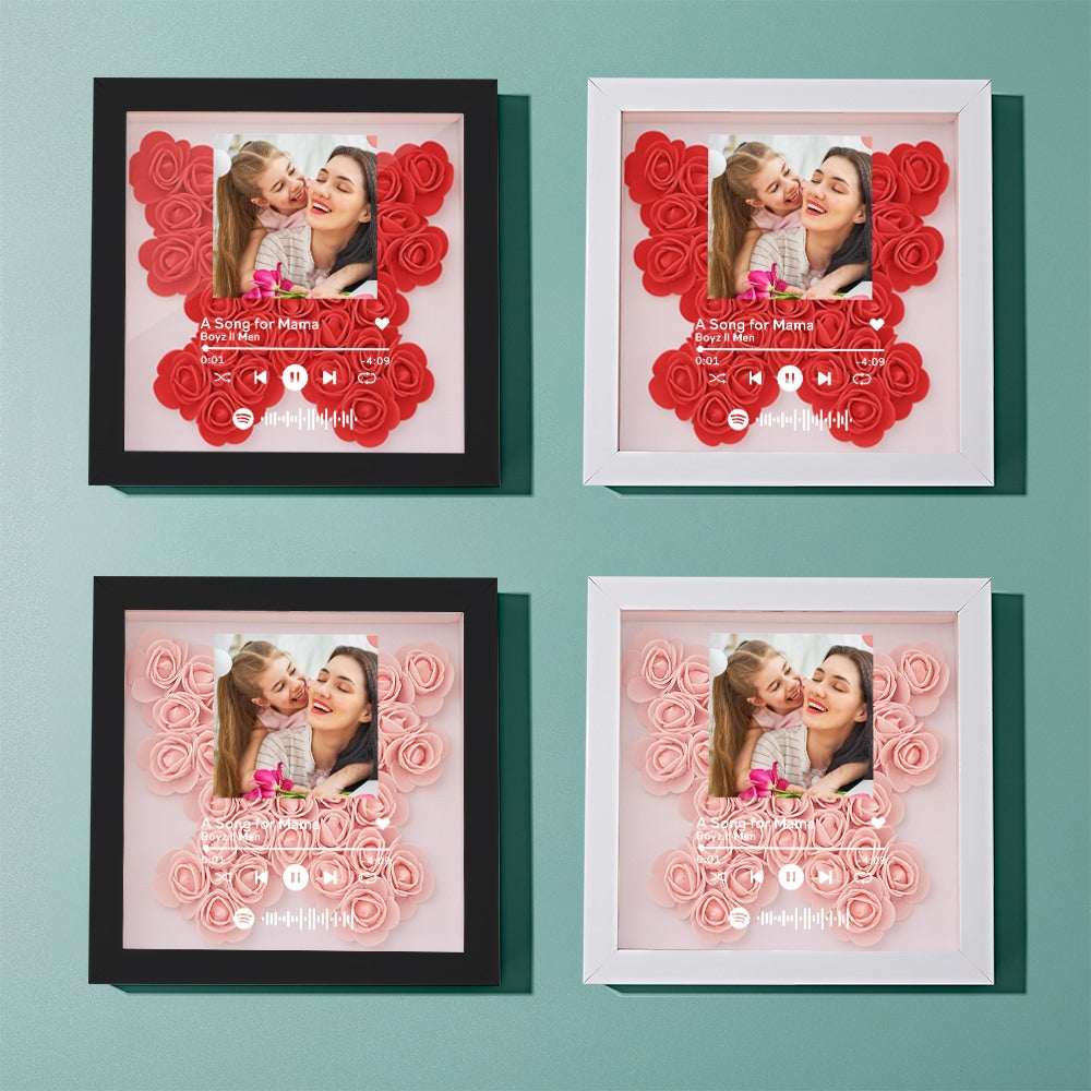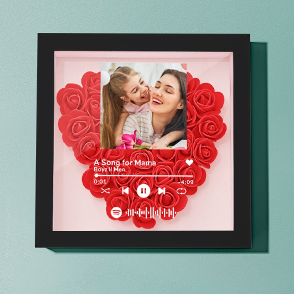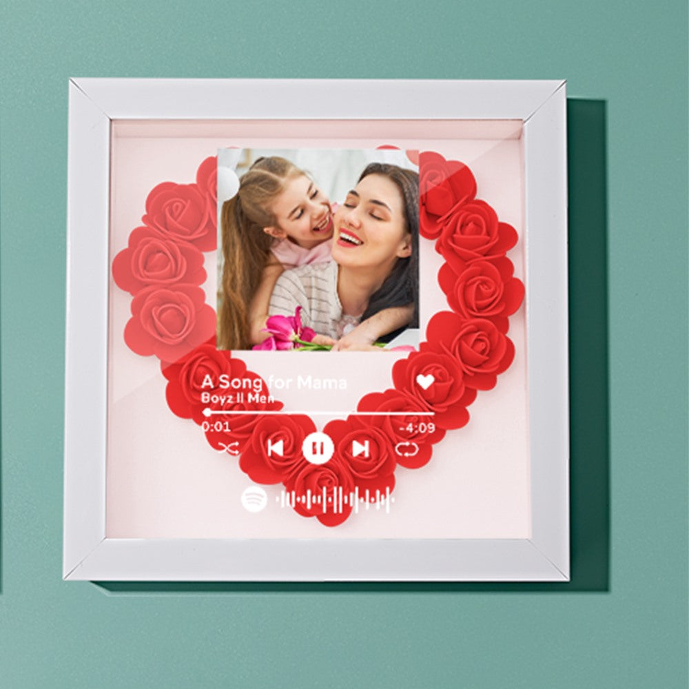 Surprise your loved one with this beautiful, personalized flower shadow box. You can customize it with the picture of you and mom, favorite music and scannable music code to keep your special memories. Show your love with our beautiful roses with varied styles and colors available.