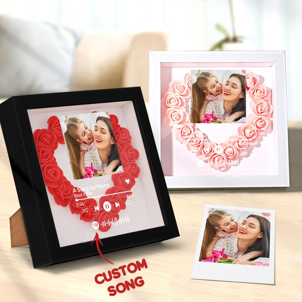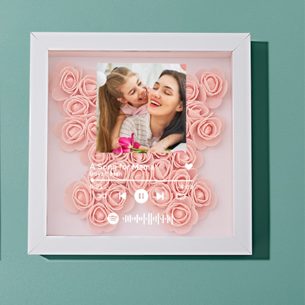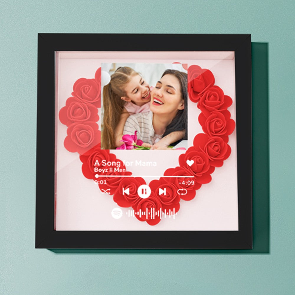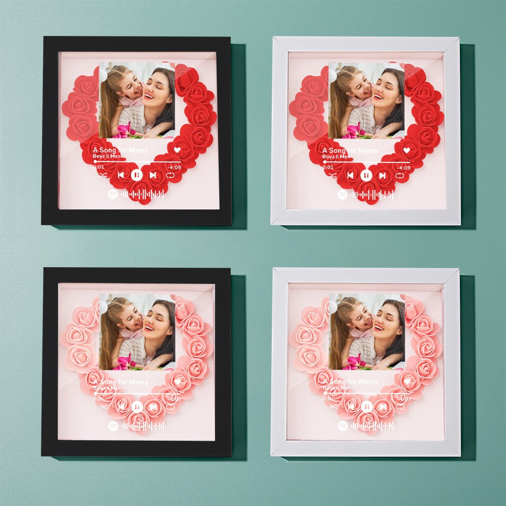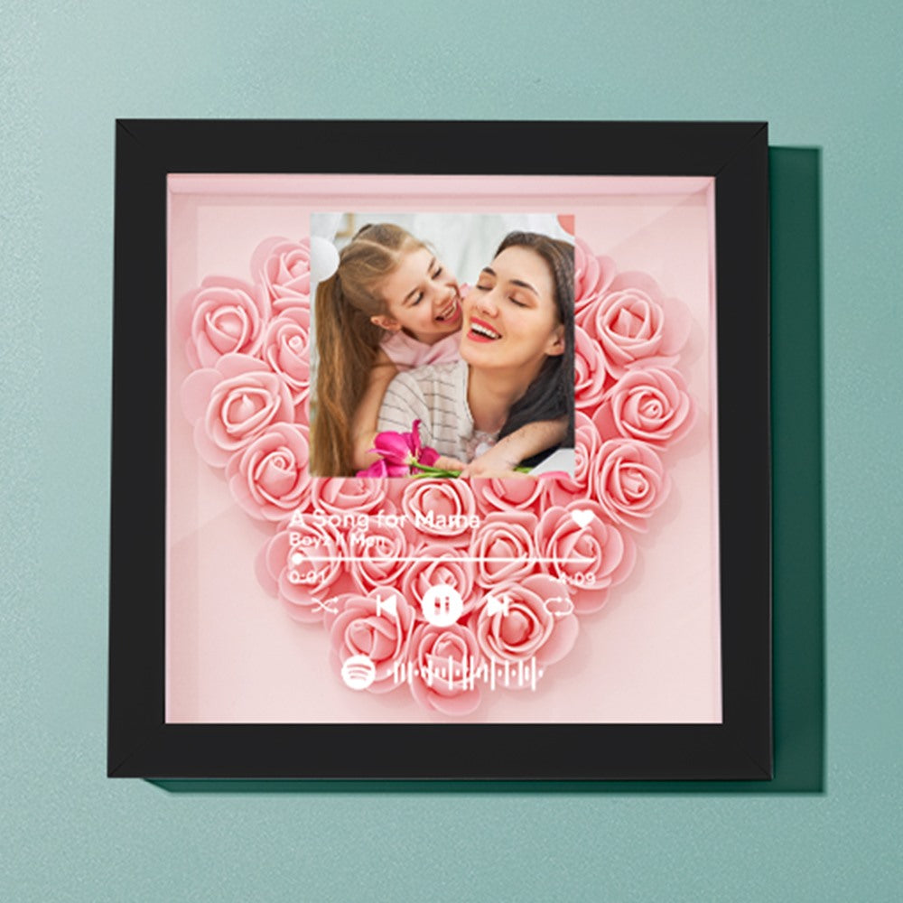 Custom Flower Shadow Box with Spotify Code Personalized Gifts for Mum
