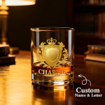 • Custom Gold Badge: Features a striking, three-dimensional gold badge design that can be customized with initials and names