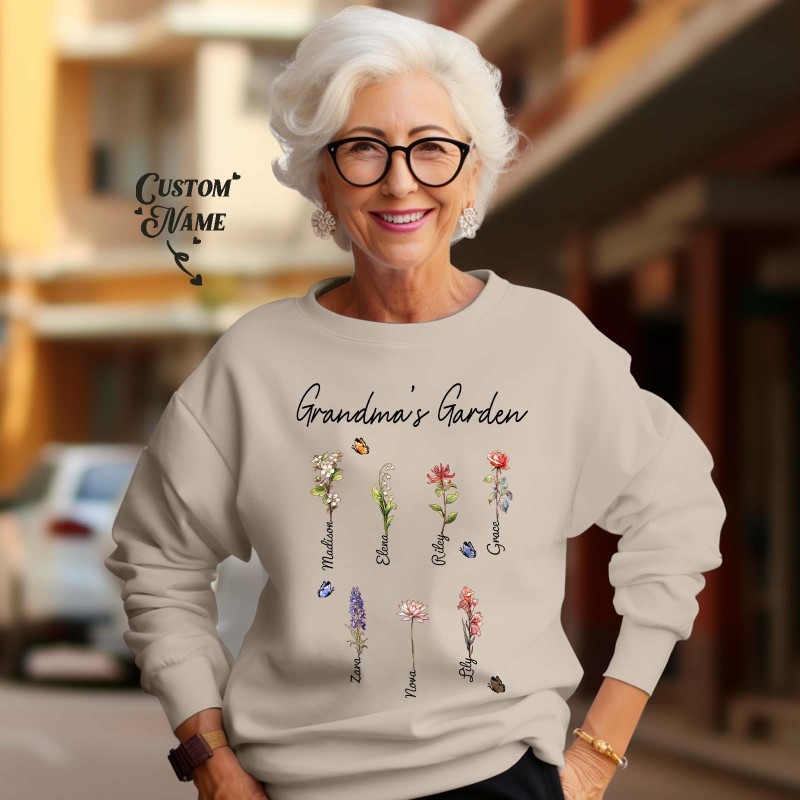 Custom Grandma's Garden Sweatshirt Personalized Birth Flower Sweatshirt Mother's Day Gift