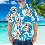 Custom Hawaiian Shirt with Boyfriend Face Leaves & Flowers Pattern Hawaiian Shirt