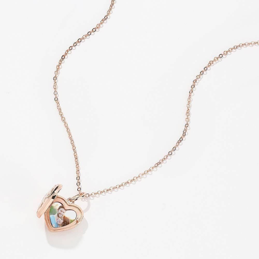 Custom Heart Locket Photo Necklace Embossed Printing Rose Gold Plated