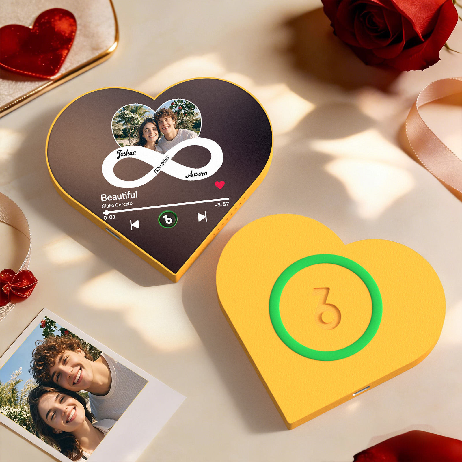 Bring your favorite music to life with our Custom Heart Frame Music Fridge Magnet! This innovative magnet is more than just a decorative piece, it's a functional, interactive device that lets you play your favorite songs directly from your fridge. You can choose your favorite song from our library, or upload your own music or recording file! Whether you want to listen to a relaxing playlist while cooking or enjoy your favorite music while grabbing a snack, this fridge magnet makes it all possible.