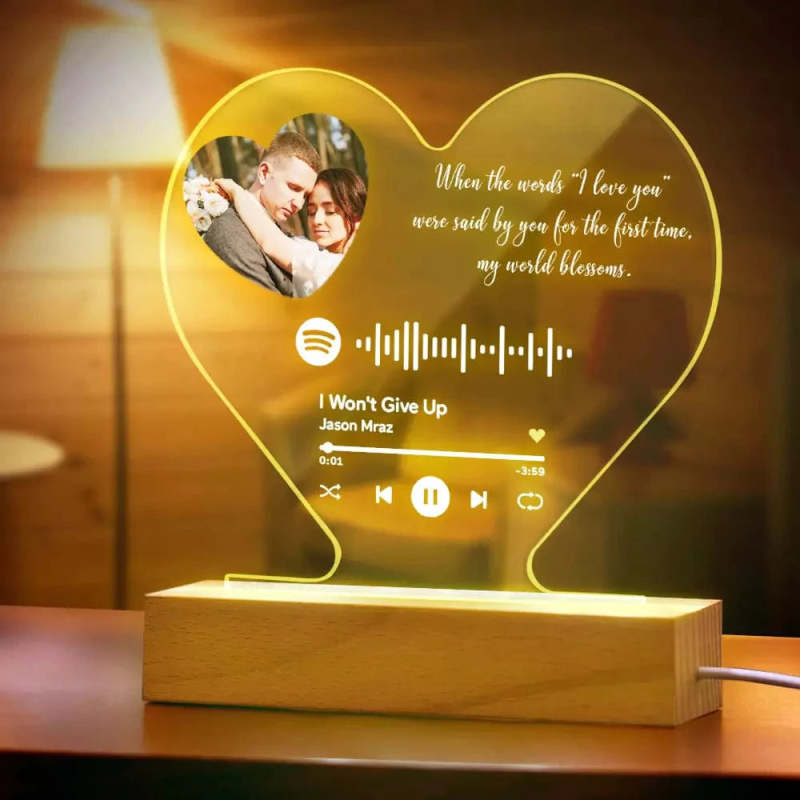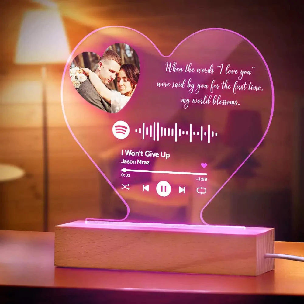 Custom Heart-Shaped Spotify Code Music Plaque Night Light Engraved Text Plaque 7-Colors
