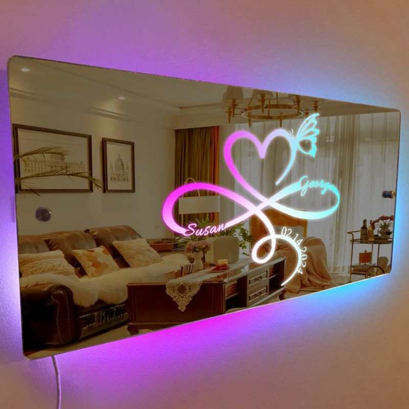 Custom Infinity Mirror Light with Name and Anniversary Date Gift for Her