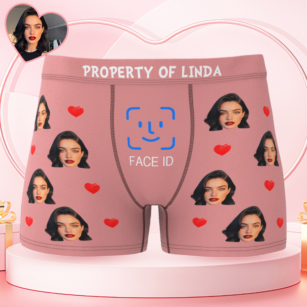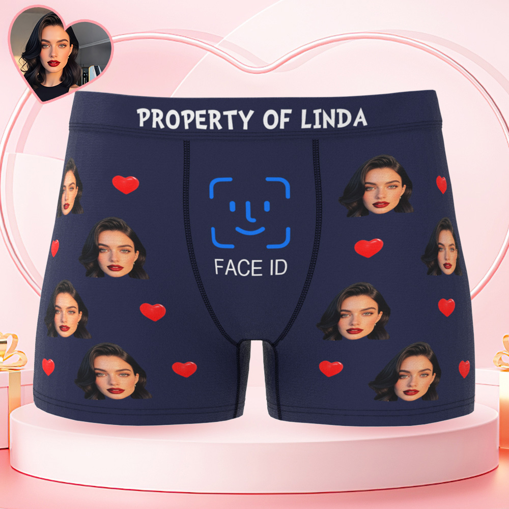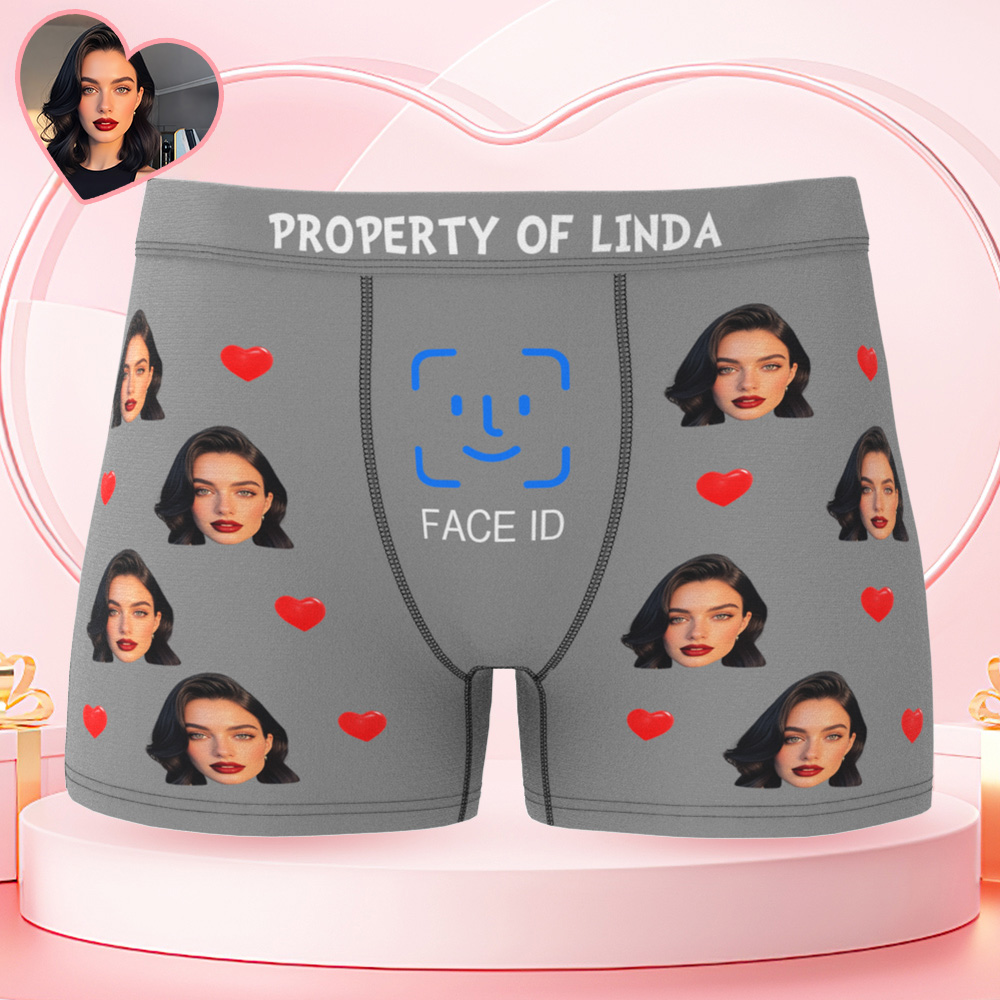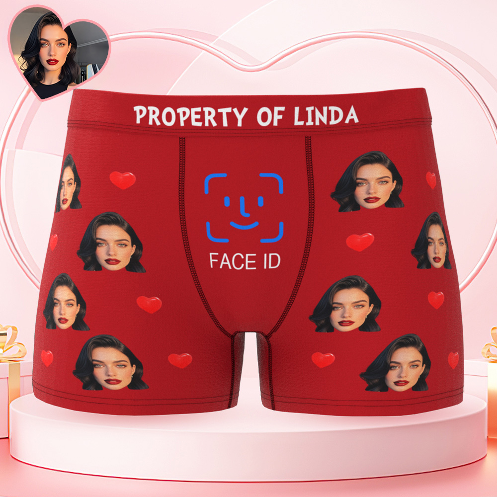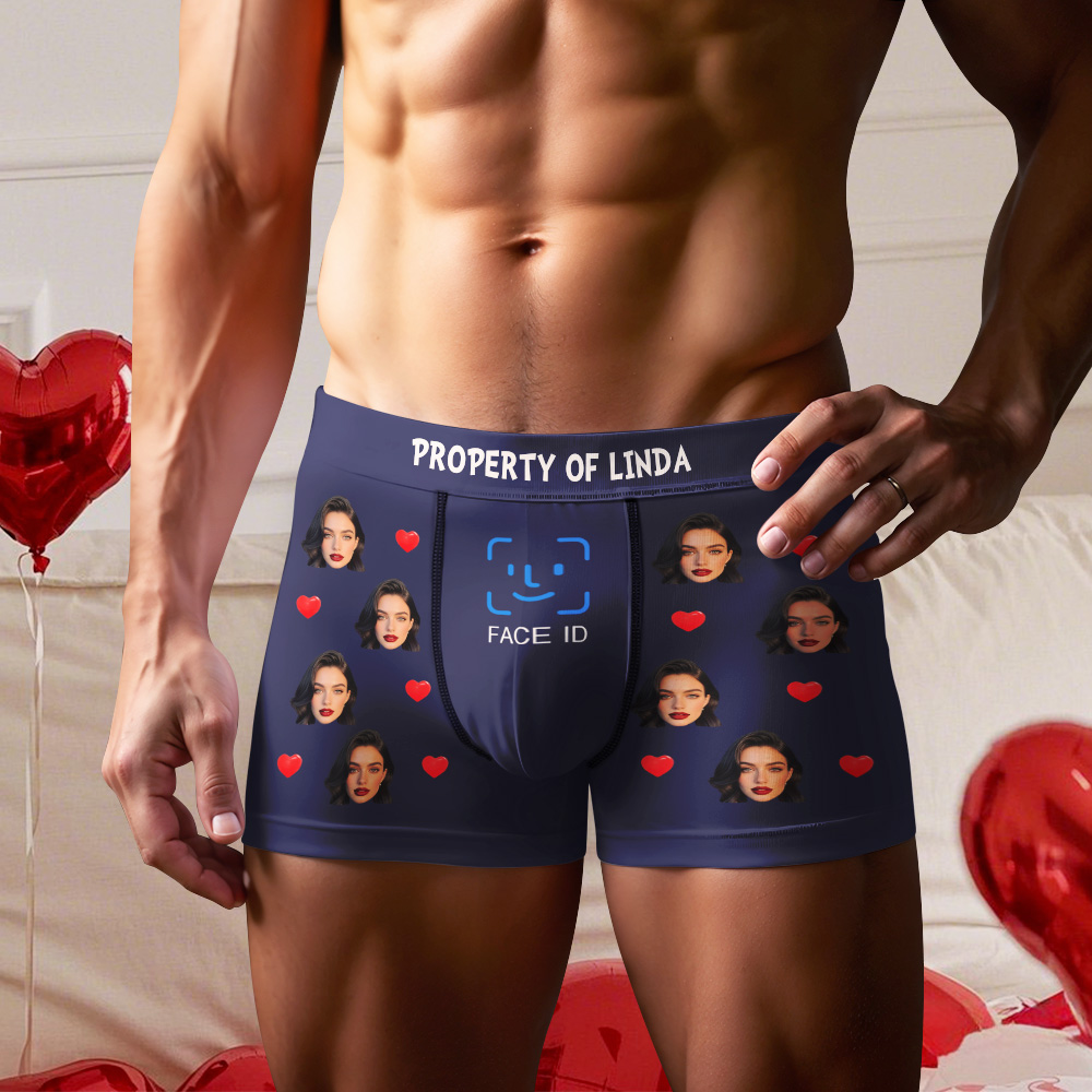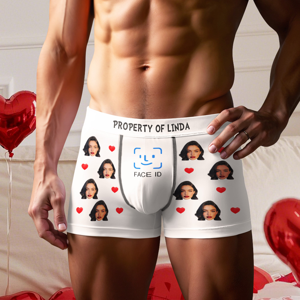 Custom Men's Boxer Shorts Personalized Face ID Touch ID Property Of Brief Boxer with Name Valentine's Day Gift