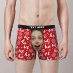 Custom Men's Photo Boxers Personalized Christmas Big Face Red Underwear Christmas Gift for Him