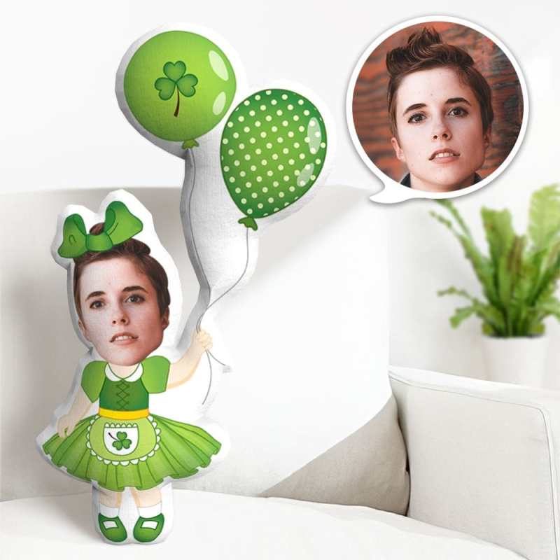 Custom Minime Pillow Custom Face Pillow Lucky Clover Balloon Gift For St. Patrick's Day