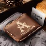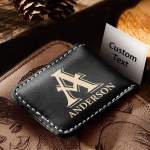 Custom name magnetic leather money clip for dad boyfriend husband gift. Handcrafted with high-quality materials and feels wonderful. There are 2 strong magnets that safely hold your cash.