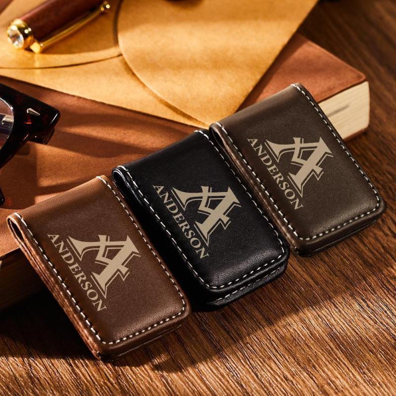 Custom Money Clip Name Printed Magnetic Leather Money Clip Gifts For Boyfriend