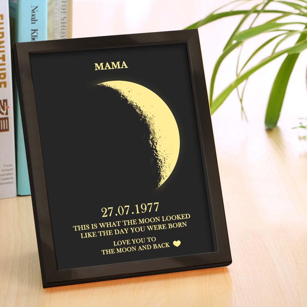 Custom Moon Phase and Names Wooden Frame with Your Text Custom Birth Date Art Frame Best Mother's Day Gift