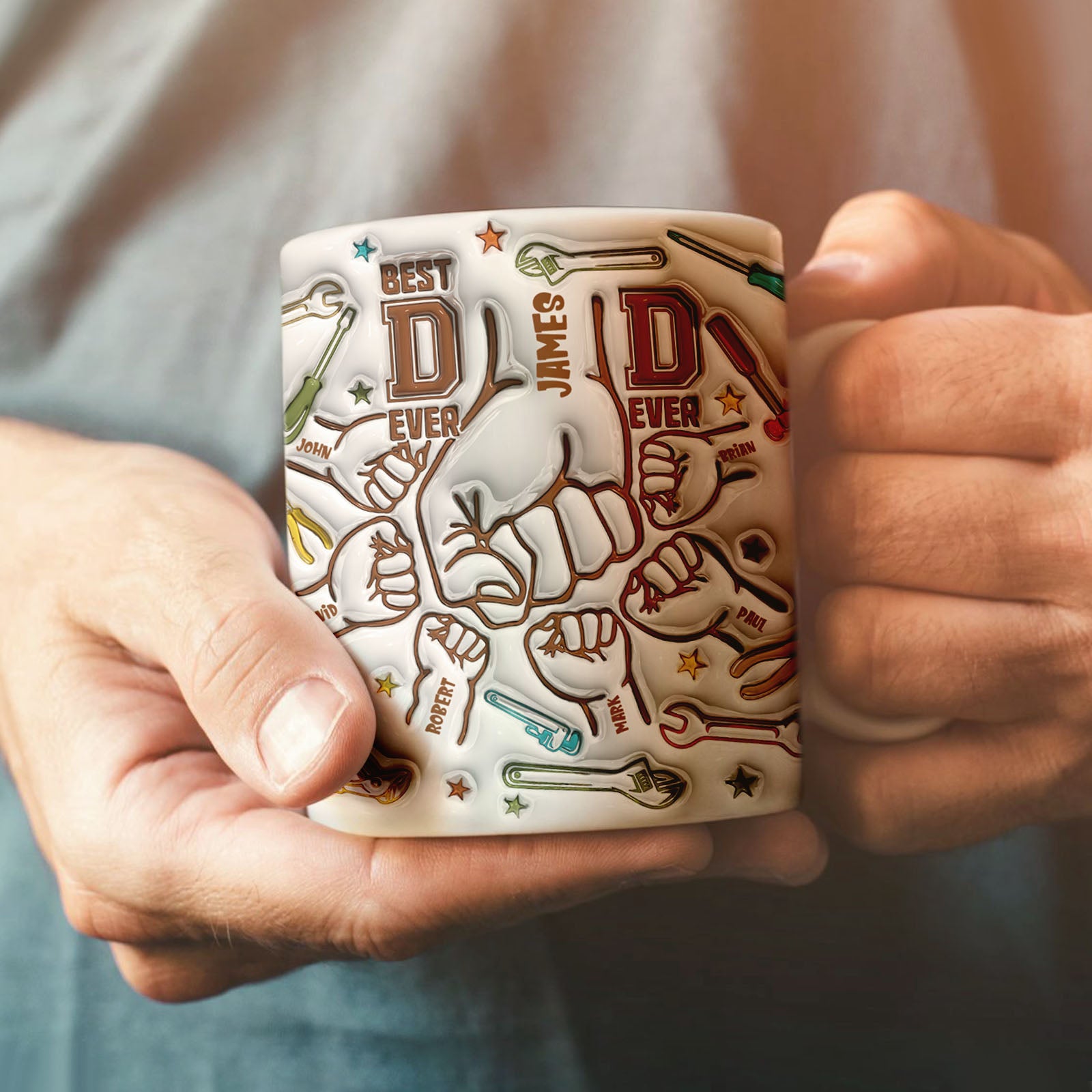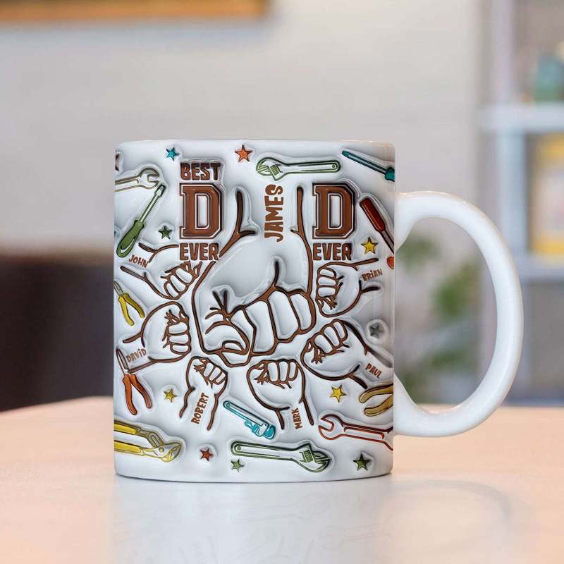 Custom Mug With 1-6 Kids' Names 3D Inflated Effect Printed Mug Happy Father's Day Gifts