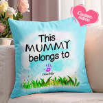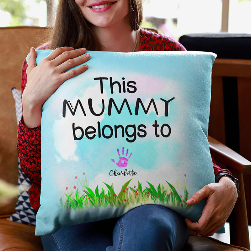 Custom Name Throw Pillow Mother's Day Handprint Gift This Mummy belongs to