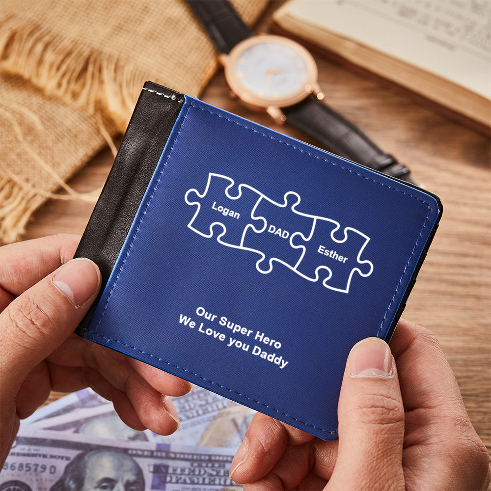 Custom Name Wallet with Names Gift for Dad with 2 Kids' Names Father's Day Gift