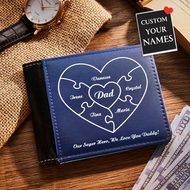 Custom Names Wallet Men's Bifold PU Wallet Father's Day Keepsake Gifts for Father with 5 Kids' Names