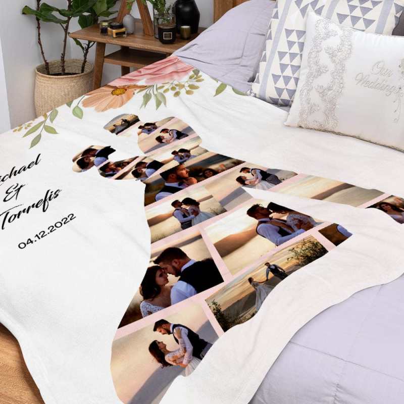 This wedding-themed blanket presents your wedding photos in another way, allowing you to customize the name, date or photo. This blanket can be used as a wedding gift or an anniversary gift. It's a very memorable gift that never goes out of style. Give it to your loved ones and the recipient will be very happy.