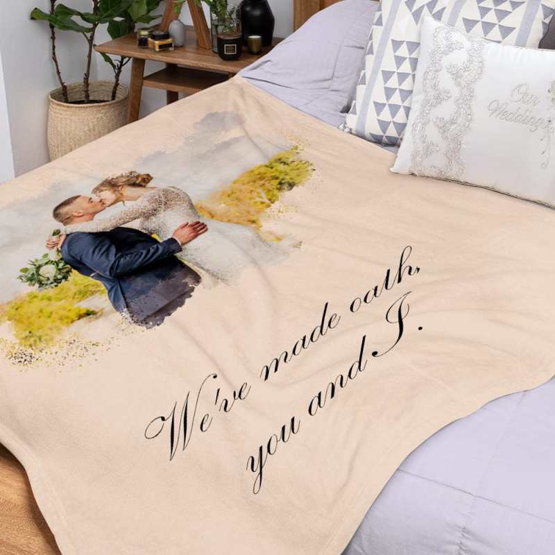 This wedding-themed blanket presents your wedding photos in another way, allowing you to customize the name, date or photo. This blanket can be used as a wedding gift or an anniversary gift. It's a very memorable gift that never goes out of style. Give it to your loved ones and the recipient will be very happy.
