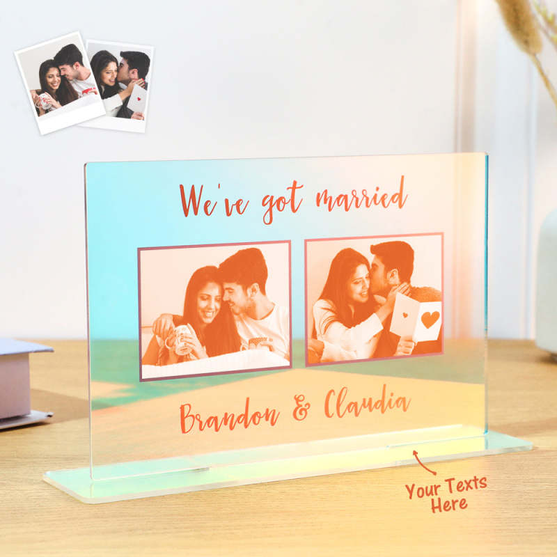 Custom couple photo keepsake plaque with slimline stand. Show how much you love each other with these beautifully engraved photo frames. Casual design for your precious family or holiday photos, ideal for decorating any room or office. Capture your favorite moments and tell a story with a Picture Frame. Display art and photo prints of friends, family, vacations, and more.