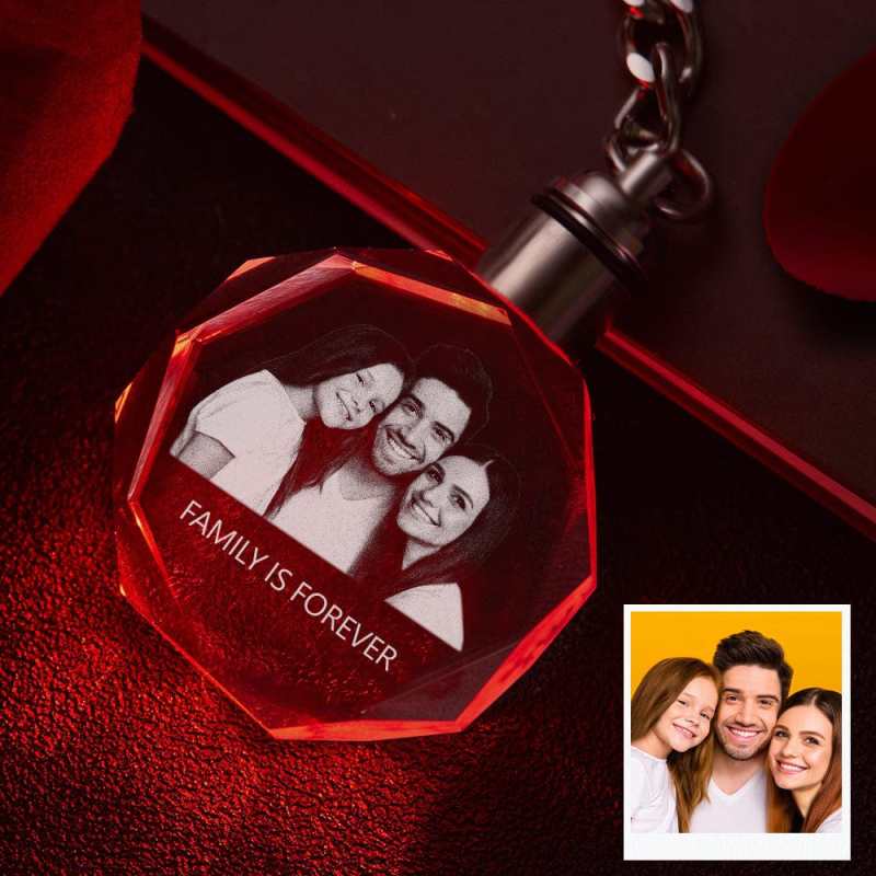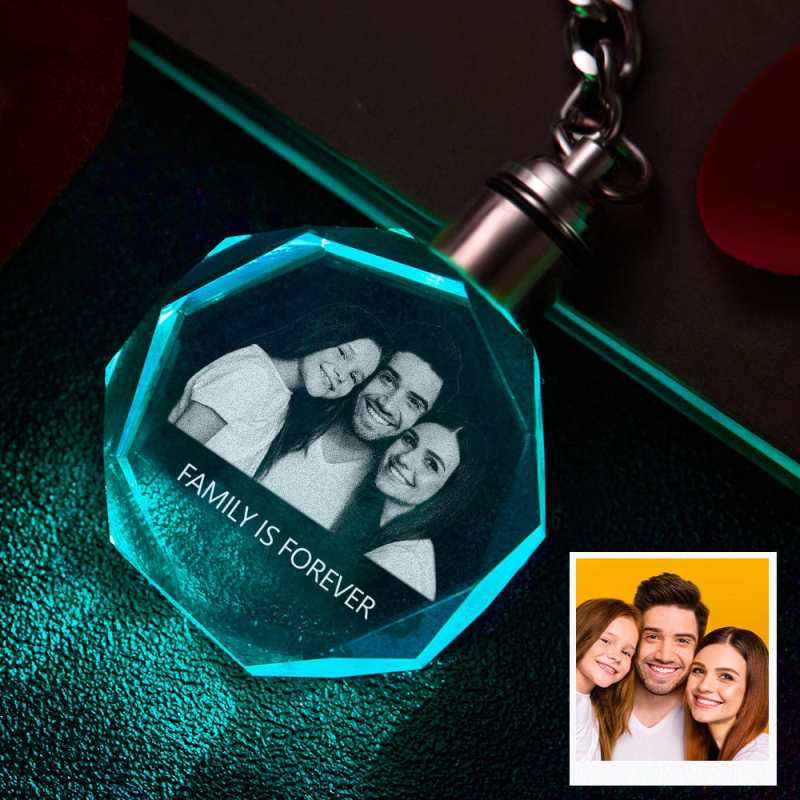 Custom Keychain Crystal Photo Keychain Octagon Shape Personalized Gifts for Family