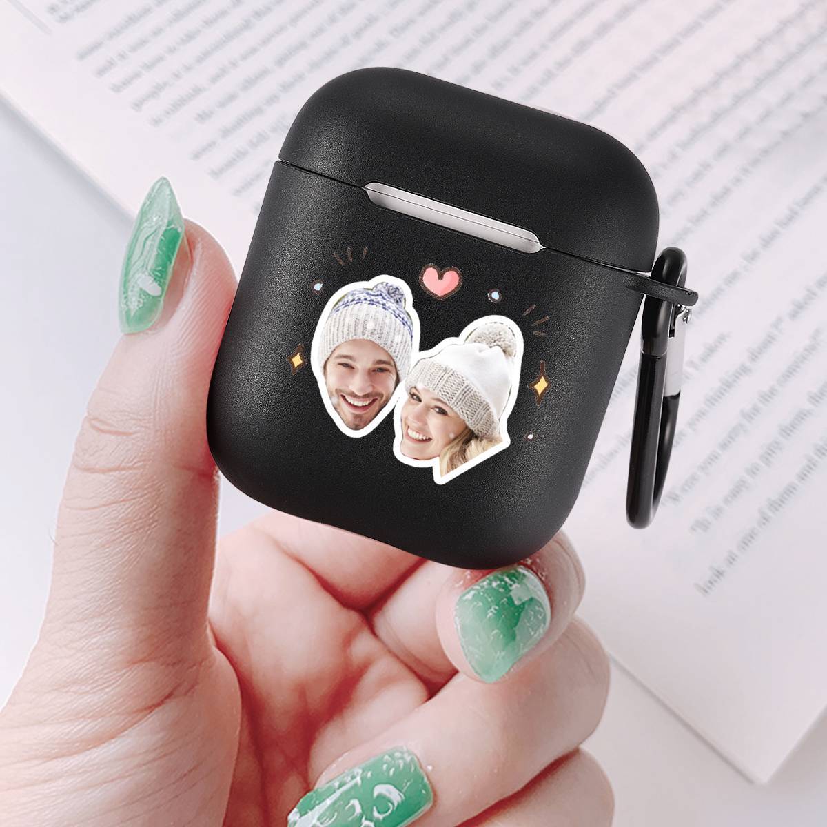 Custom Photo Earphone Case for AirPods Couples Keepsake Gift Black - Avatar
