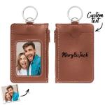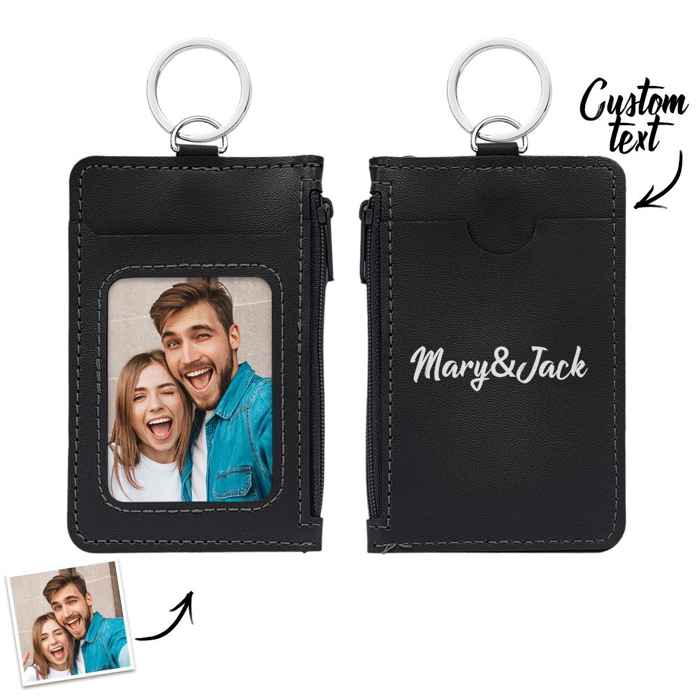 Custom Photo Engraved Keychain Leather Card Holder Creative Gifts