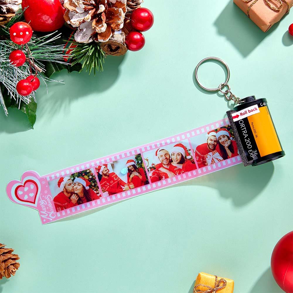 Custom Photo Film Roll Keychain Colorful Heart Decor Camera Keychain Christmas Day Gift
