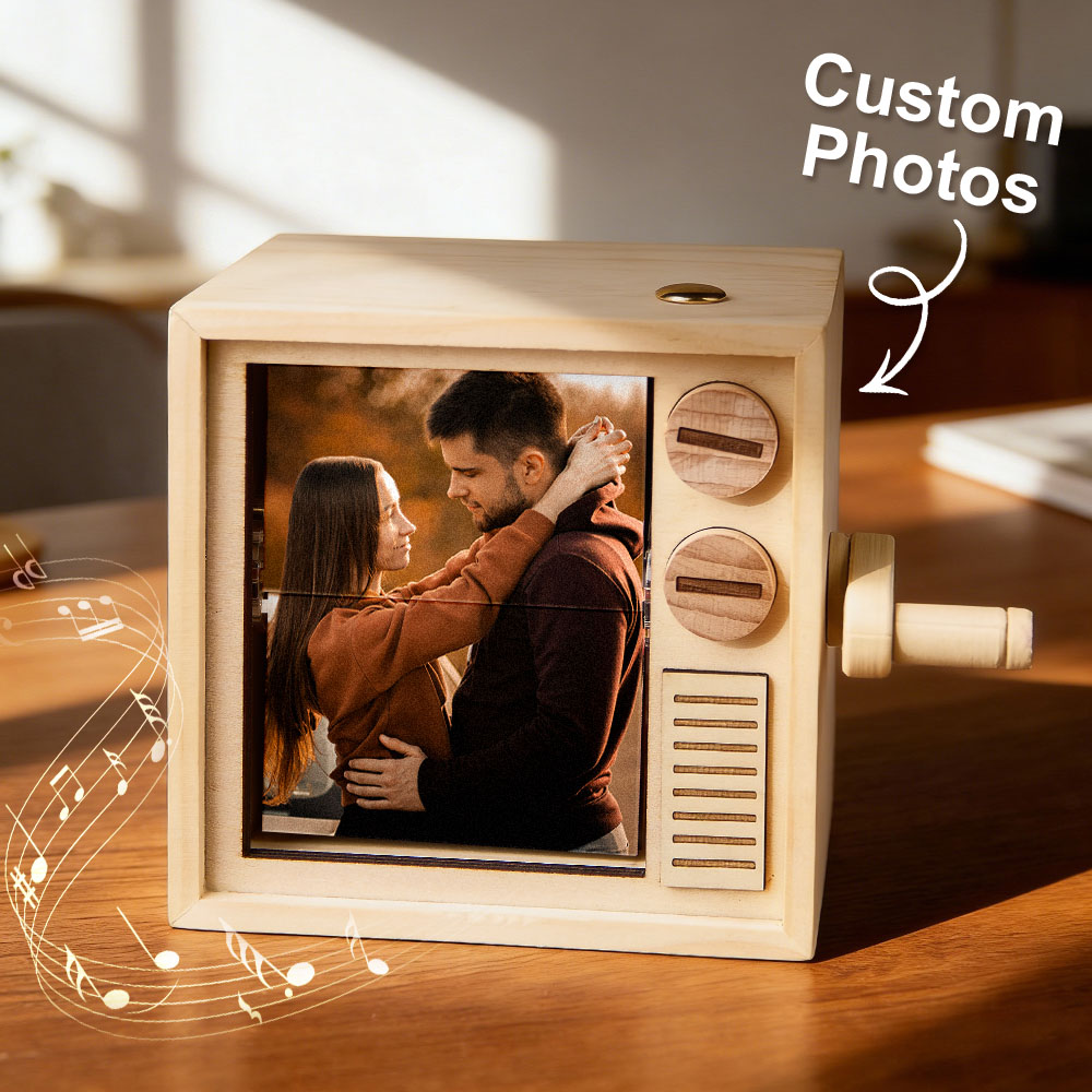 Custom Photo Flipbook Frame Animation Machine Mechanical Hand-cranked Flipbook Box with Light Black Walnut Valentine's Day Gifts