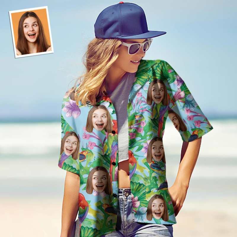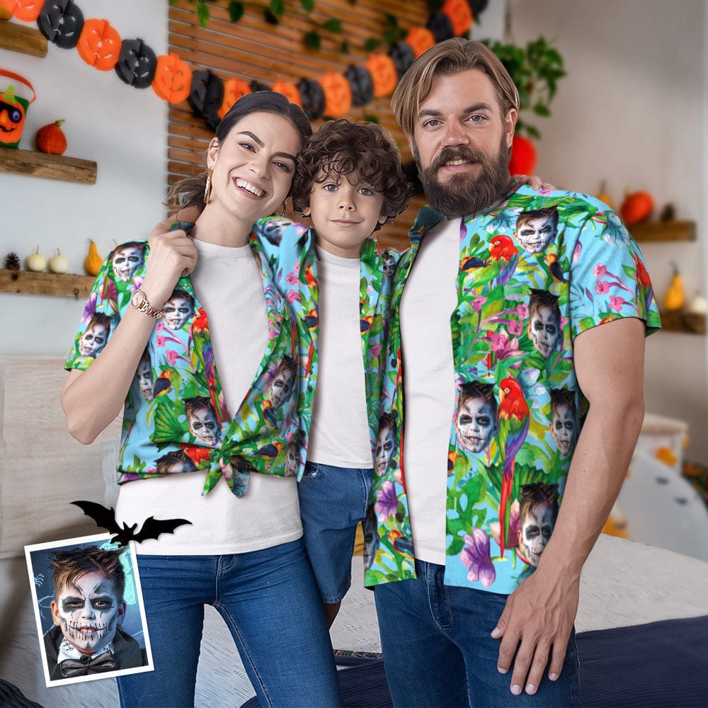 Custom Photo Hawaiian Shirt Parent-child Wears Personalised Face Hawaiian Shirt Gift Colorful Parrot