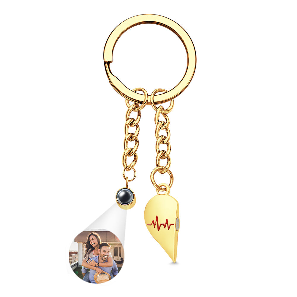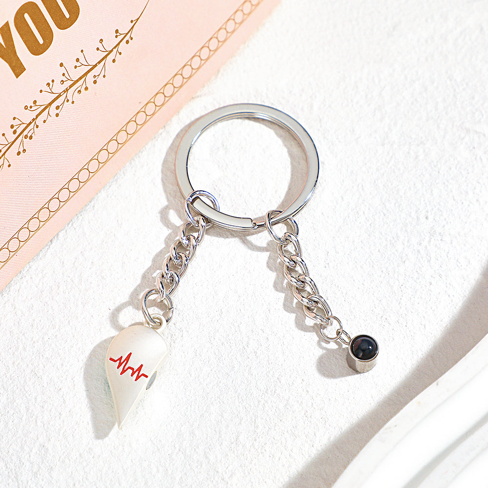 Custom Photo Heart Keychains Couple Projection Photo Magnetic Heartbeat Keyrings
