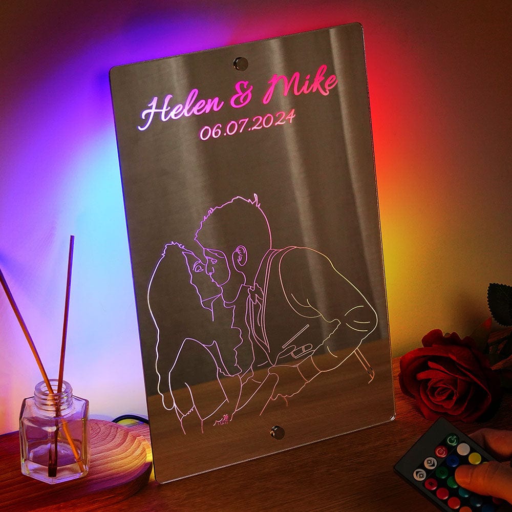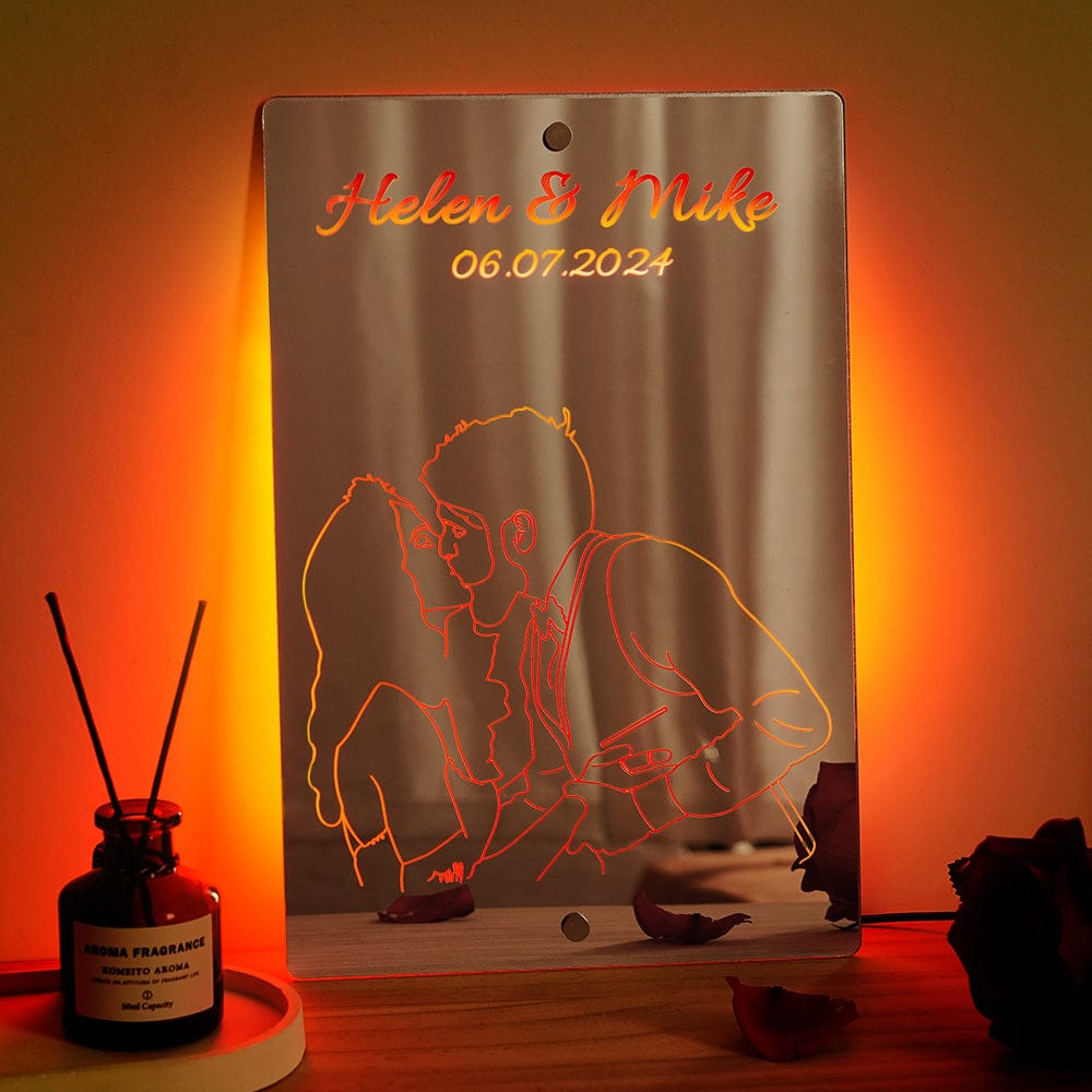 Custom Photo Line Art Mirror Light Personalized Name Mirror Light