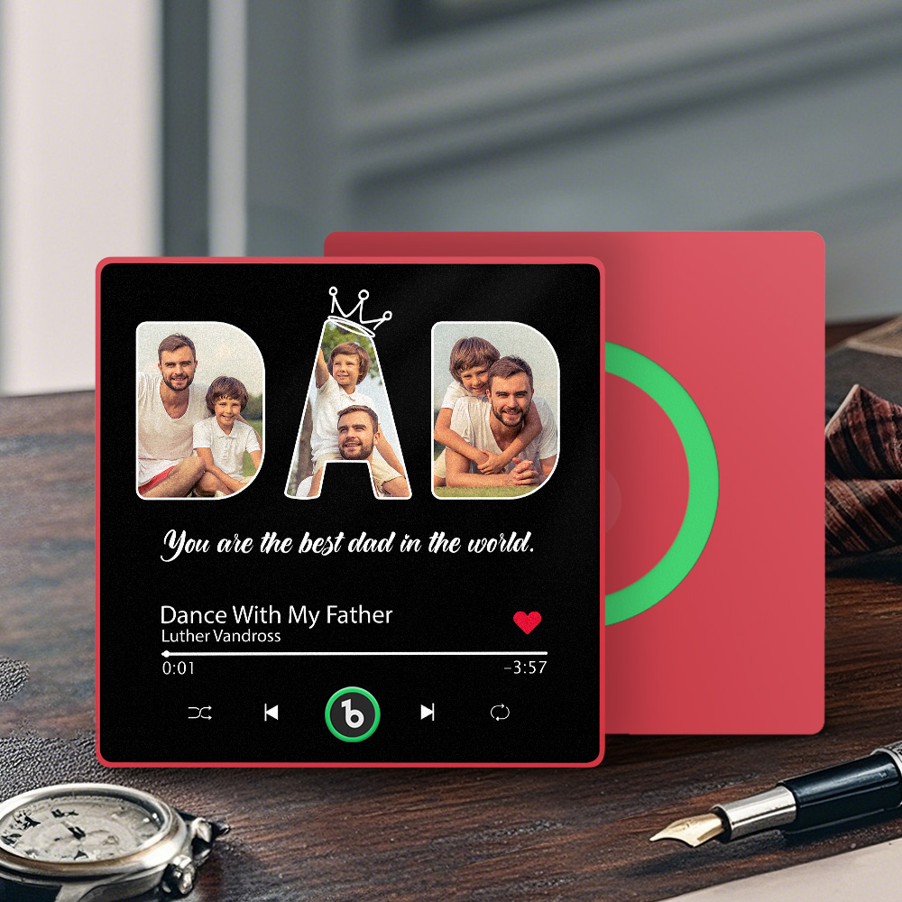 Surprise your dad with a personalized touch! Our Custom Dad Music Fridge Magnet is a thoughtful gift that will bring a smile to his face every time he opens the fridge. Add a special message or song for a unique and heartfelt present.