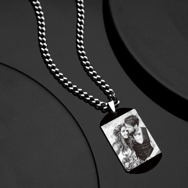 Custom Photo Necklace With Words Photo And Date Gifts for Couple On Anniversary