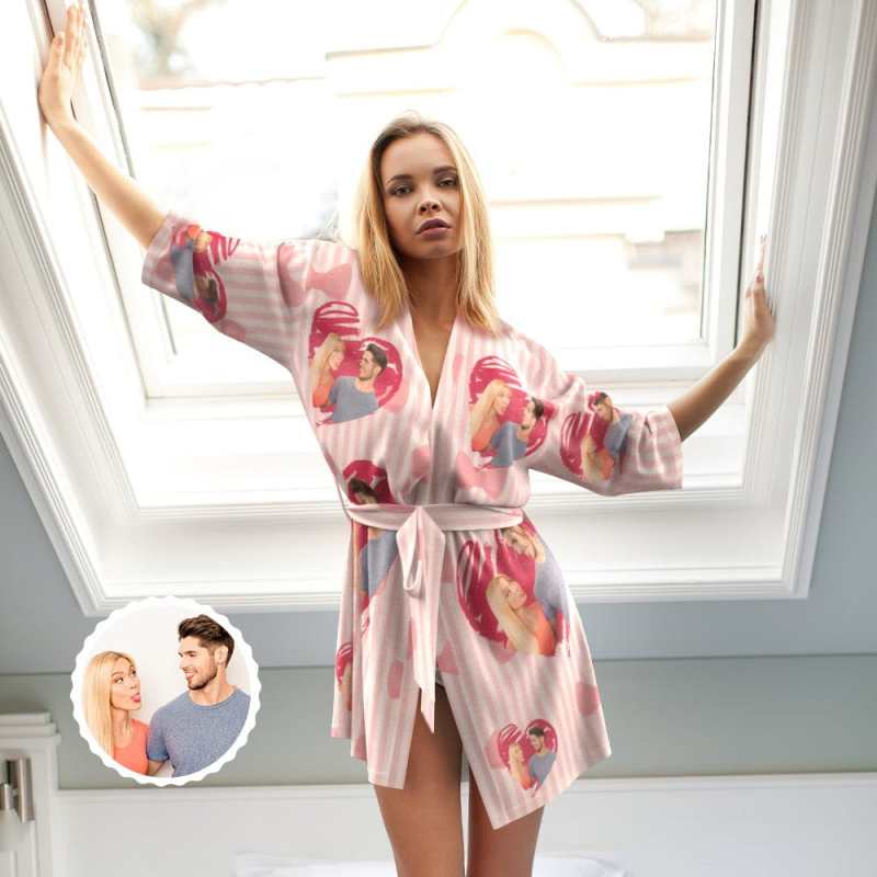 Custom Photo Nightgown Heart Pattern Night Robe Gift For Couple