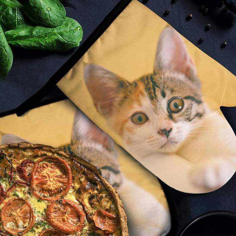 Photo Oven Mitts & Pot Holders Set Baking Set Kitchen Gift For Cat Lover