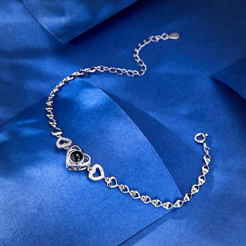 Custom Photo Projection Heart Link Bracelet Personalized Sterling Silver Bracelet