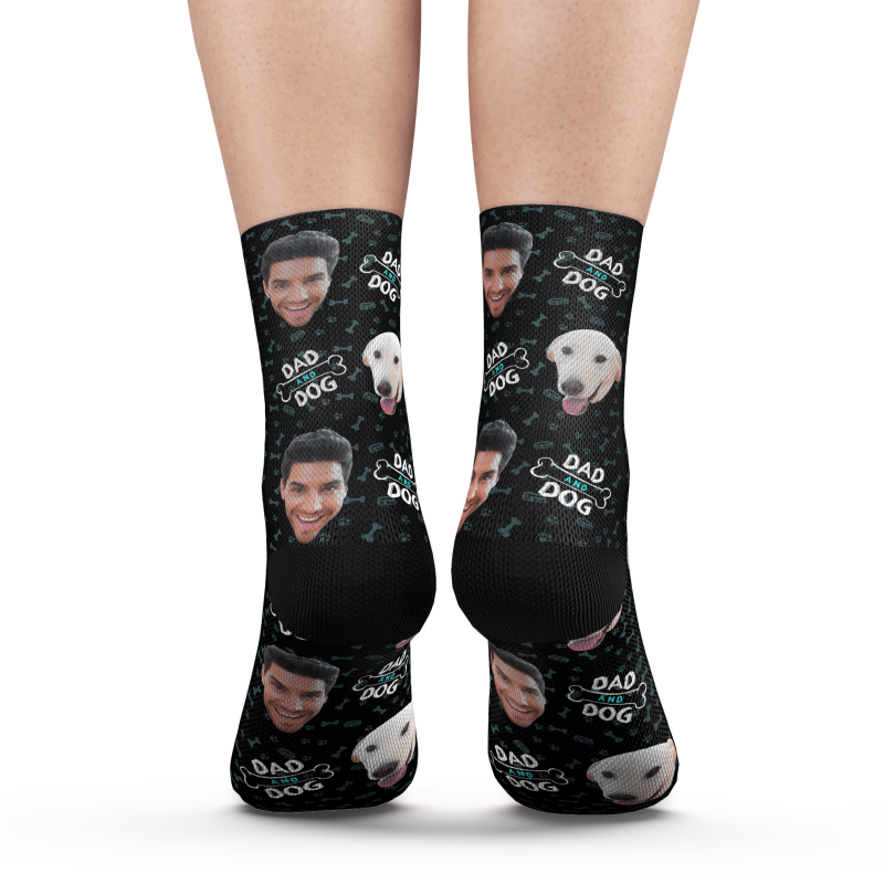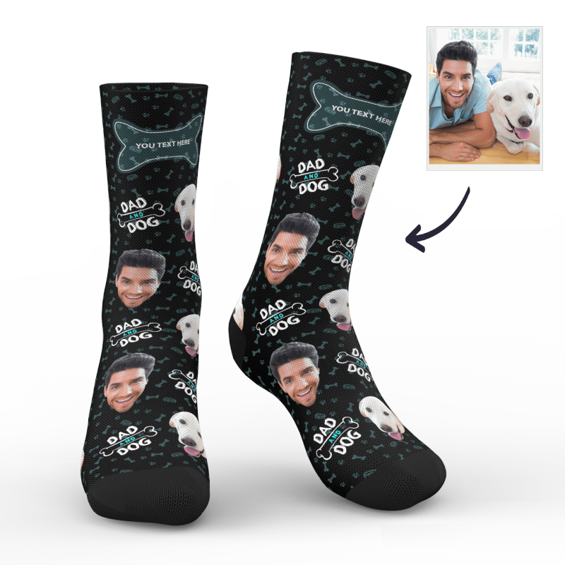 Personalized Photo Socks Dog And Dad Face Mash Socks With Your Text