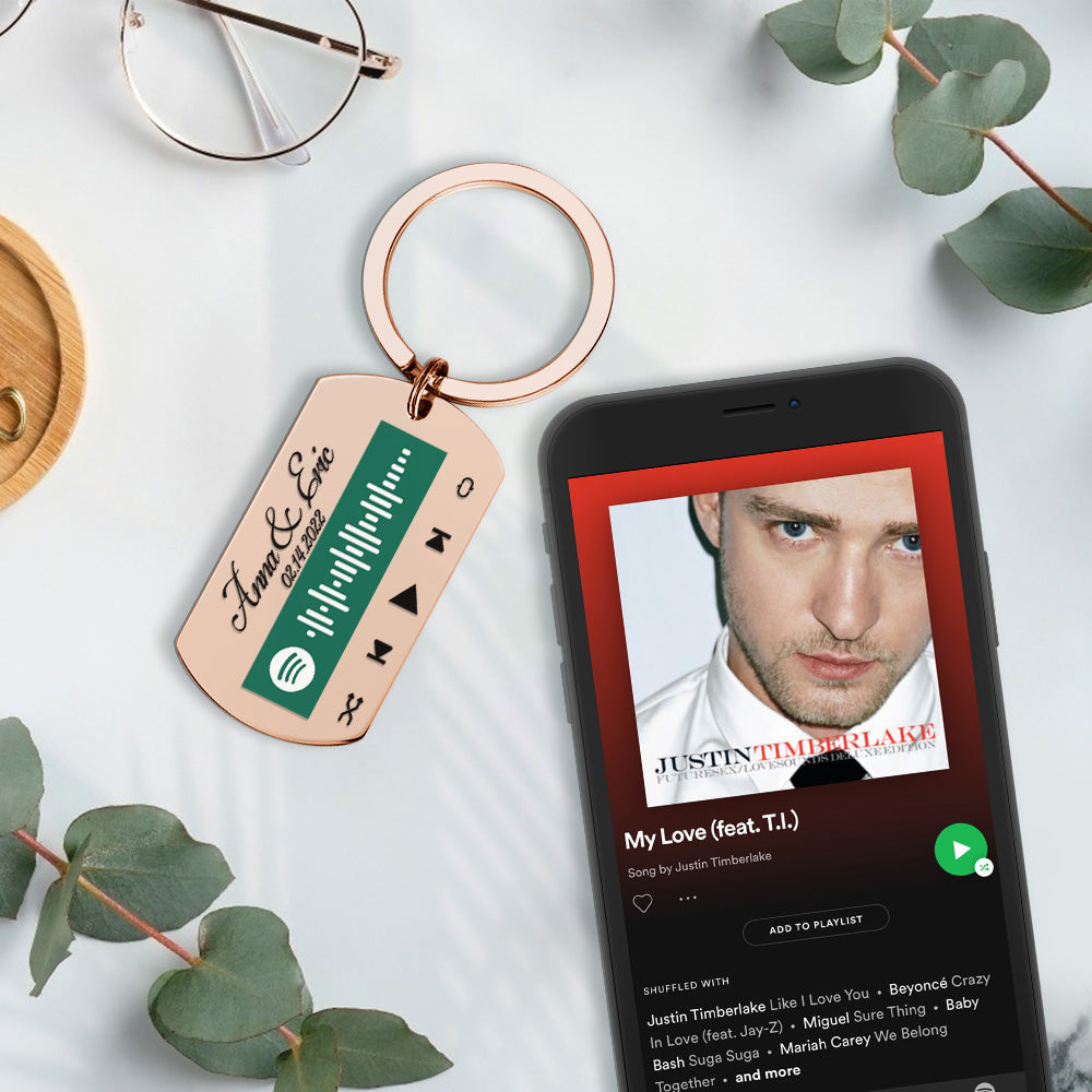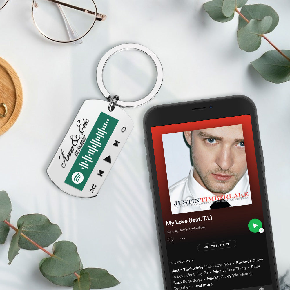 - Spotify Code Keychain:Engrave the Spotify Code on the keychain,Record a song that affects your life.Spotify music keychain, engrave your favorite Spotify song scan code on the keychain, scan the code in the Spotify APP anytime you want to listen.