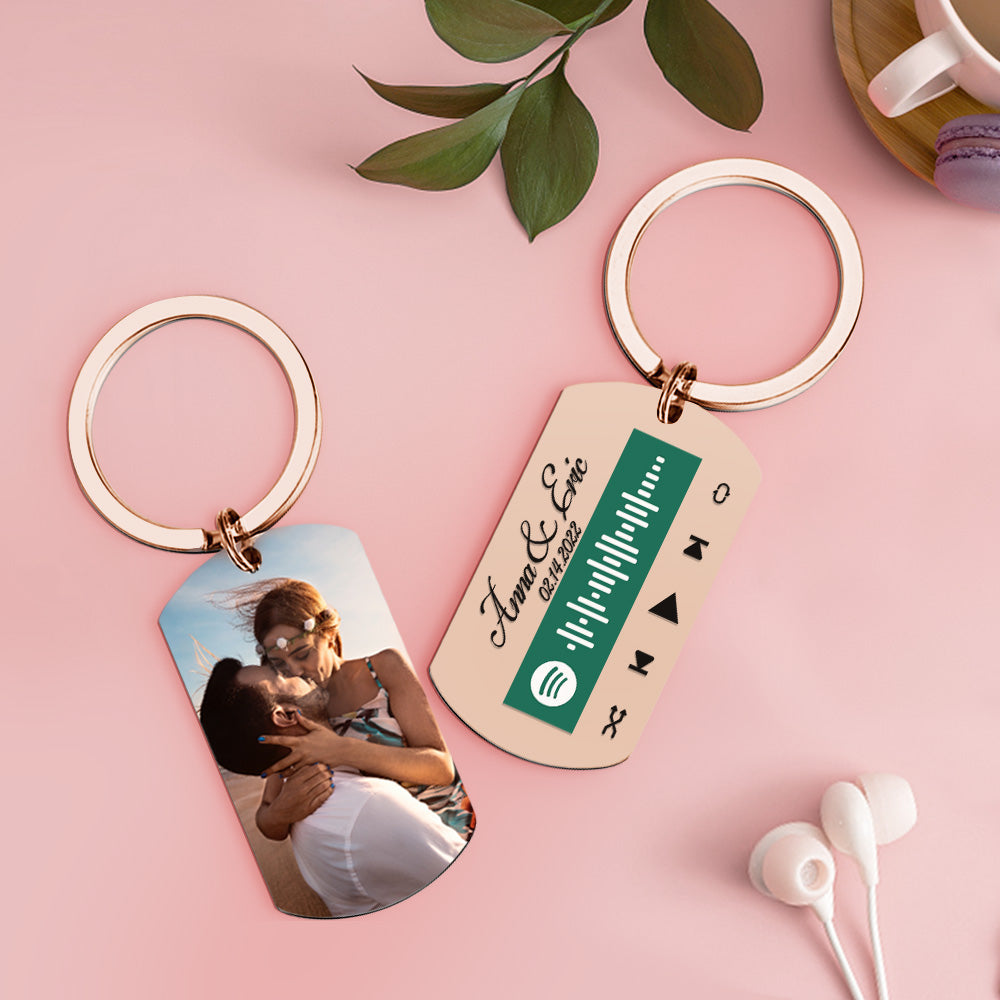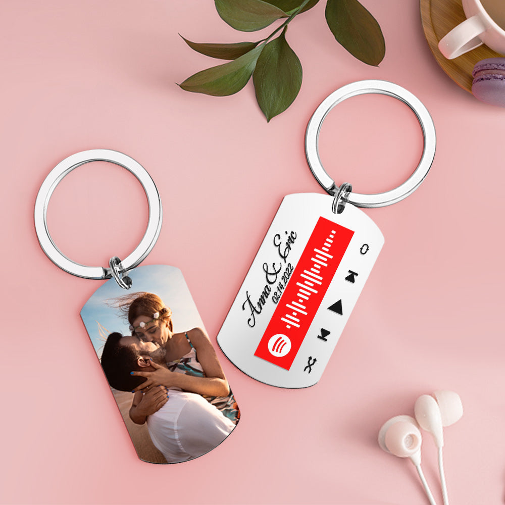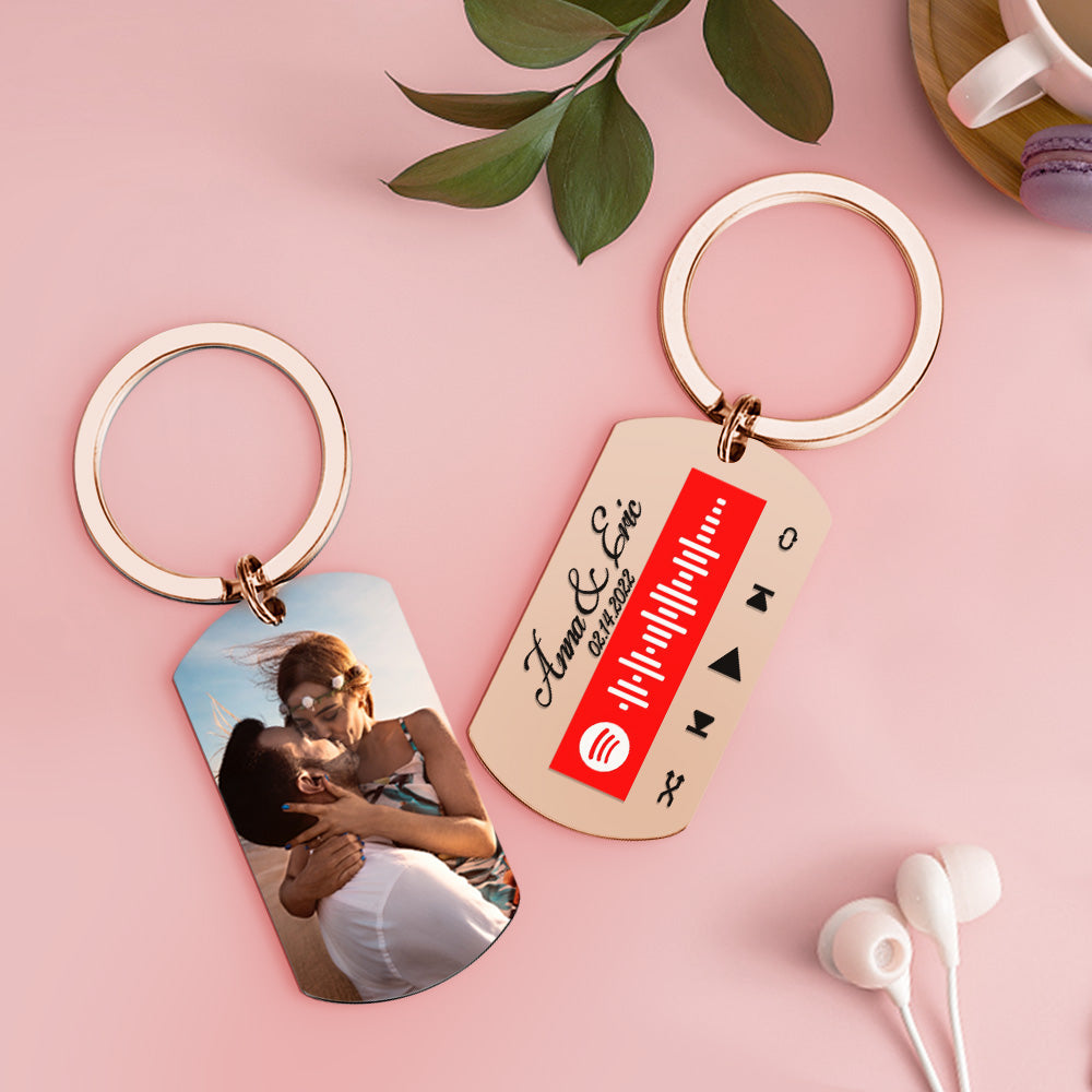 Custom Photo Spotify Keychain Engraved Text Best Gift For Her